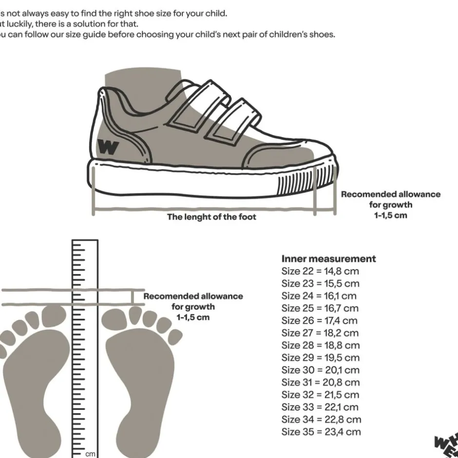 Simple gummistøvler med højt skaft, lavet af naturgummi til børn. – Højt skaft – Ydersåler dækker tæerne for ekstra beskyttelse – Naturgummi – Genanvendt polyesterfoer – Logorefleks bagpå – Findes med Wheat signaturprint Wheat’s klassiske gummistøvler er lavet af naturgummi og bør altid være en fast del af dit barns garderobe. Gummistøvlerne har et enkelt design med aftagelige indlægssåler og Wheat-logo som refleks på bagsiden. Ydersålen er lavet til at dække tæerne for at give ekstra beskyttelse, når dit barn leger udendørs. De er normale i størrelsen og er nemme for dit barn at komme i. Anbefalet voksetillæg: 1-1,5 cm Vejl. Indvendige mål: Størrelse 22 = 14,8 cm Størrelse 23 = 15,5 cm Størrelse 24 = 16,1 cm Størrelse 25 = 16,7 cm Størrelse 26 = 17,4 cm Størrelse 27 = 18,2 cm Størrelse 28 = 18,8 cm Størrelse 29 = 19,5 cm Størrelse 30 = 20,1 cm Størrelse 31 = 20,8 cm Størrelse 32 = 21,5 cm Størrelse 33 = 22,1 cm Størrelse 34 = 22,8 cm Størrelse 35 = 23,4 cm — Ydermateriale: Naturgummi For: 100% Genanvendt polyester Ydersål: Naturgummi