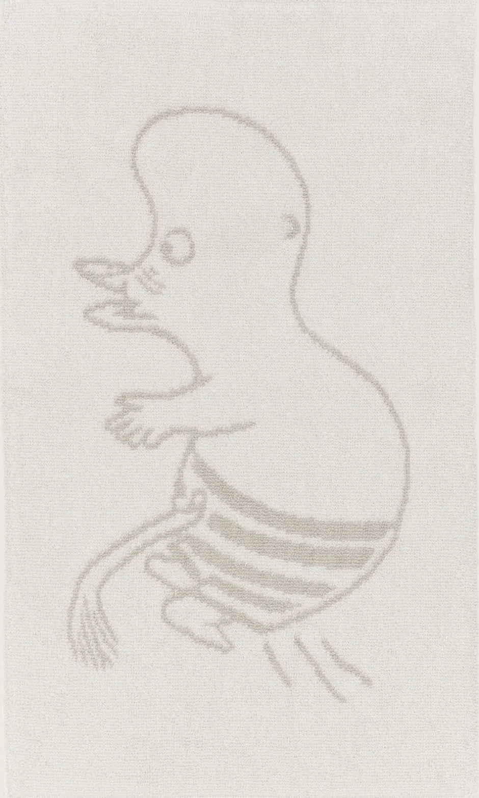 Svøb dig ind i den bløde hygge i Mumitroldenes badehåndklæde. Mumitrolden er flyttet til en isoleret ø med sin familie. Sammen med Snorkfrøken tilbringer de deres dage med at lave ‘stenmarkører’ af planker, de finder i havet. De kaster net ud for at fange noget fisk, men tiltrækker hovedsageligt tang.