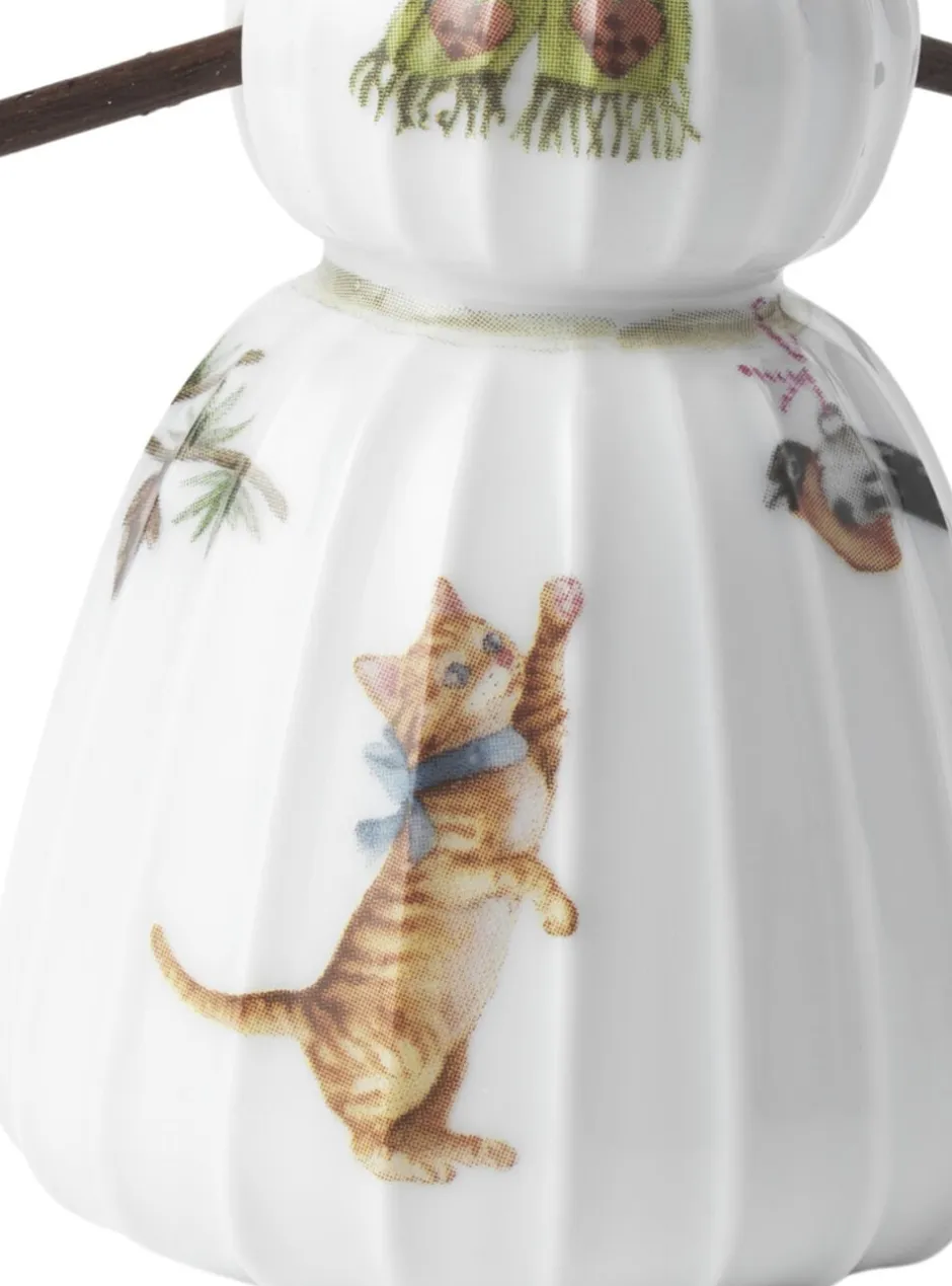 Juletraditioner og håndværkstraditioner i skøn forening. Med familien af snemænd fra Kählers juleserie Hammershøi Christmas bringer du enkelt og autentisk julestemningen ind i boligen med glade smil og hyggelige julemotiver, der matcher seriens øvrige dele og fuldender julehyggen, samtidig med at du kan nyde nostalgien i Kählers håndlavede designtraditioner. Gå en tur i haven, parken eller skoven og find jeres egne små kviste, der kan bruges som arme til seriens søde figurer. Måske som en ny, hyggelig juletradition den 1. december. På den måde bliver snemændene endnu mere personlige og betydningsfulde. Vær opmærksom på at de medfølgende arme til både den stående og hængende familie af snemænd udelukkende er vedlagt som inspiration til, hvordan du kan personliggøre dine Kähler-snemænd i din helt egen DIY-stil. Snekonen har selvfølgelig en høj hat på, som vi forbinder det med en klassisk snemand. Hun måler 11 cm i højden og 6 cm i diameter og er udformet i bløde linjer med Hammershøi-seriens ikoniske riller, der kendetegner Hans-Christian Bauers stel og bordpynt. Denne model er den stående udgave af Snekonen, men du kan også få hende som ophæng. Så der er frit valg. Skab dit eget snelandskab i vinduet, på hylden eller på julebordet, eller lad hele familien pynte på juletræet eller på smukke grene i en flot vase. Kählers snemandsfamilie består af Snemanden, Snekonen, Snedrengen og Snepigen, der alle på forskellig vis er dekoreret med motiver fra Hammershøi Christmas-serien malet i akvarel af Rikke Jacobsen og overført til det snehvide porcelæn. Motiverne er klassiske julemotiver som julehjerter, kræmmerhuse og gaver i en autentisk, hyggelig og håndmalet stil, som man slet ikke kan undgå at komme i den helt rigtige julestemning af.