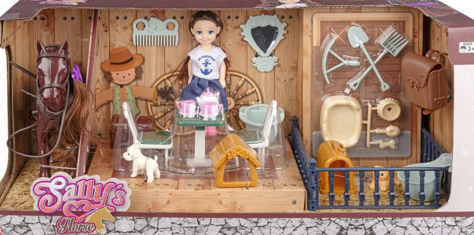 SALLY HEST-STALD-HUNDmmMED 30 DELE TILBEHØR W/B