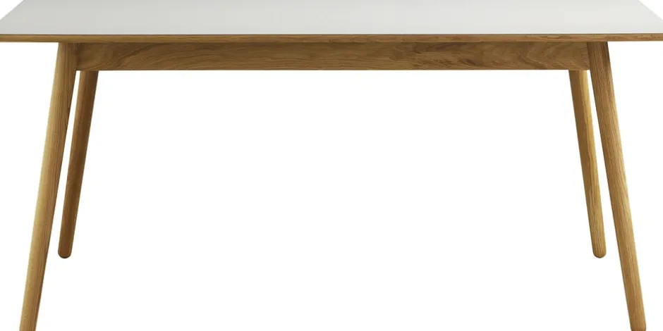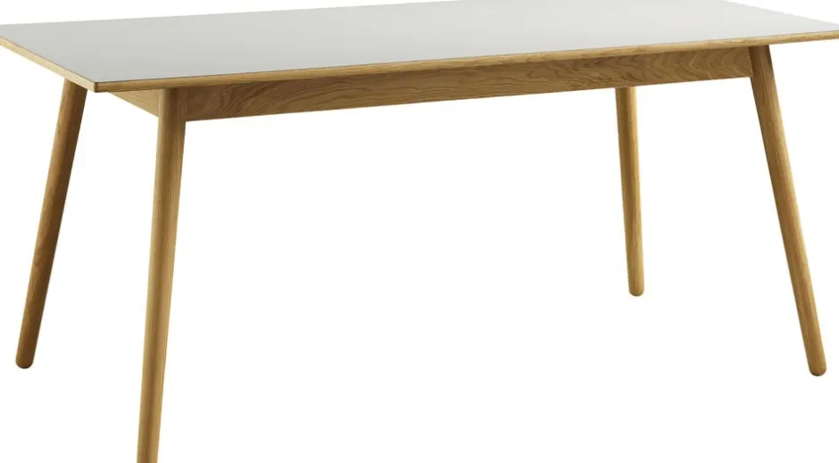 C35B Poul M. Volther Bord Rektangulært MELLEM, Eg/Linoleum, Natur/Lys grå, 82x160x72,5×2 cm