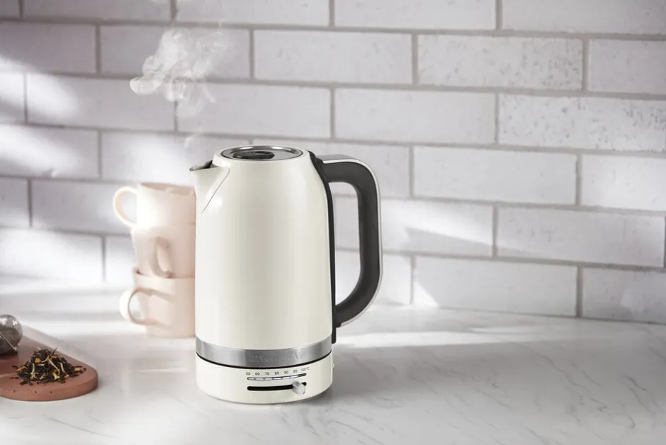 KitchenAid Elkedel er en elegant og funktionel elkedel i farven Porcelain White, designet til at imødekomme dine behov i køkkenet. Denne elkedel har en kapacitet på 1,7 liter, hvilket gør den ideel til både daglig brug og når du har gæster. Elkedlen er udstyret med temperaturkontrol, der giver dig mulighed for at indstille vandtemperaturen fra 50 til 100 grader, så du kan tilberede din te eller kaffe præcist som du ønsker det. Den opretstående model sikrer, at elkedlen er nem at bruge og opbevare. KitchenAid Elkedel er ikke kun praktisk, men også stilfuld, hvilket gør den til et attraktivt element i dit køkken. Den er designet med fokus på brugervenlighed og funktionalitet, hvilket gør det nemt at koge vand hurtigt og effektivt. Elkedlen har en 2-års garanti, hvilket giver dig tryghed i dit køb. Uanset om du er en te- eller kaffeelsker, vil denne elkedel være et værdifuldt redskab i dit køkken. Den kombinerer moderne teknologi med et tidløst design, der passer ind i enhver indretning. Oplev den perfekte balance mellem stil og funktionalitet med KitchenAid Elkedel, der er ideel til både hverdag og særlige lejligheder.