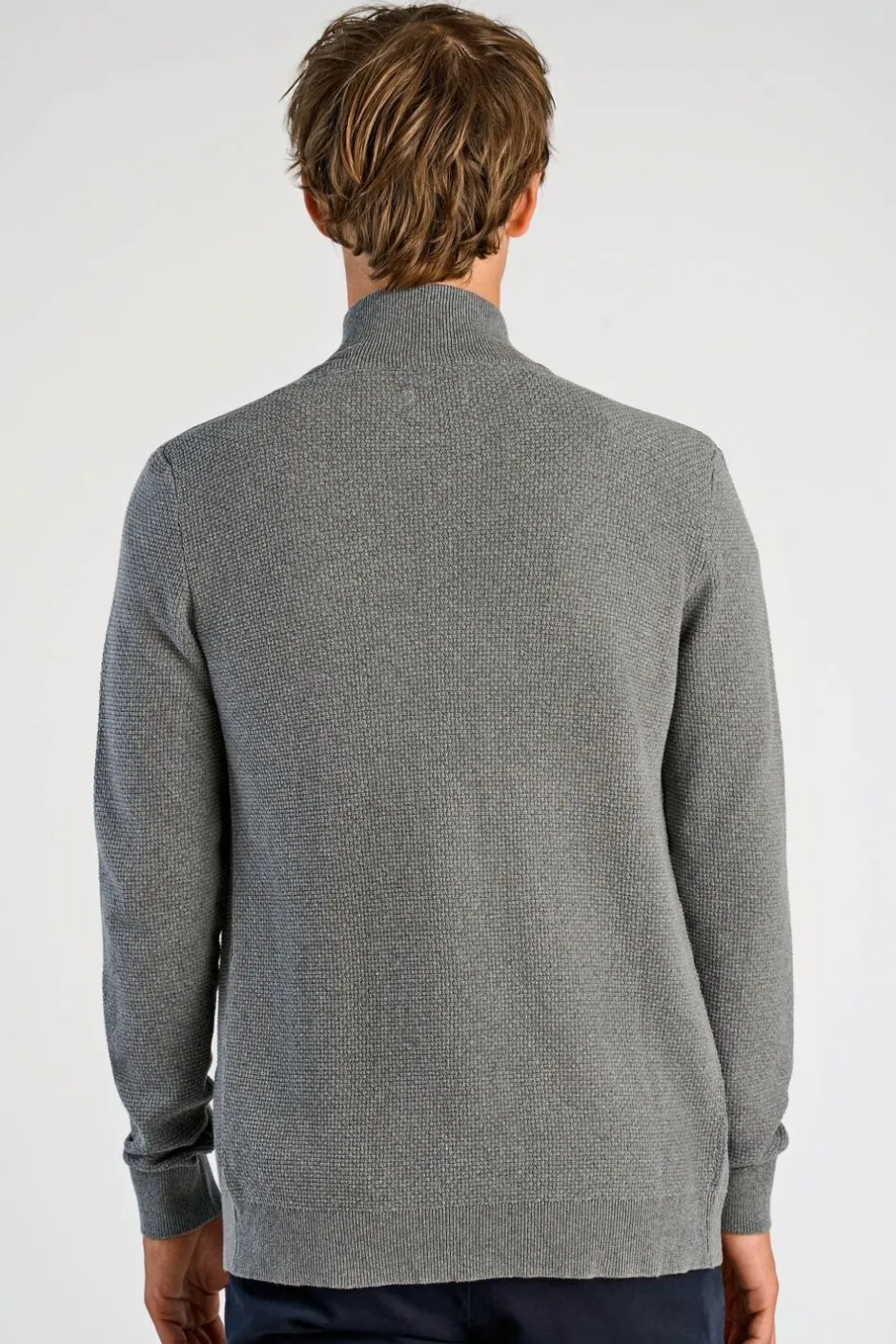 Strikket cardigan fra Lindbergh lavet i 60% genanvendt bomuld og 40% genanvendt polyester. Trøjen er ensfarvet og har ribkanter nederst på ærmerne og nederst på selve trøjen samt et logomærke nederst på venstre side.