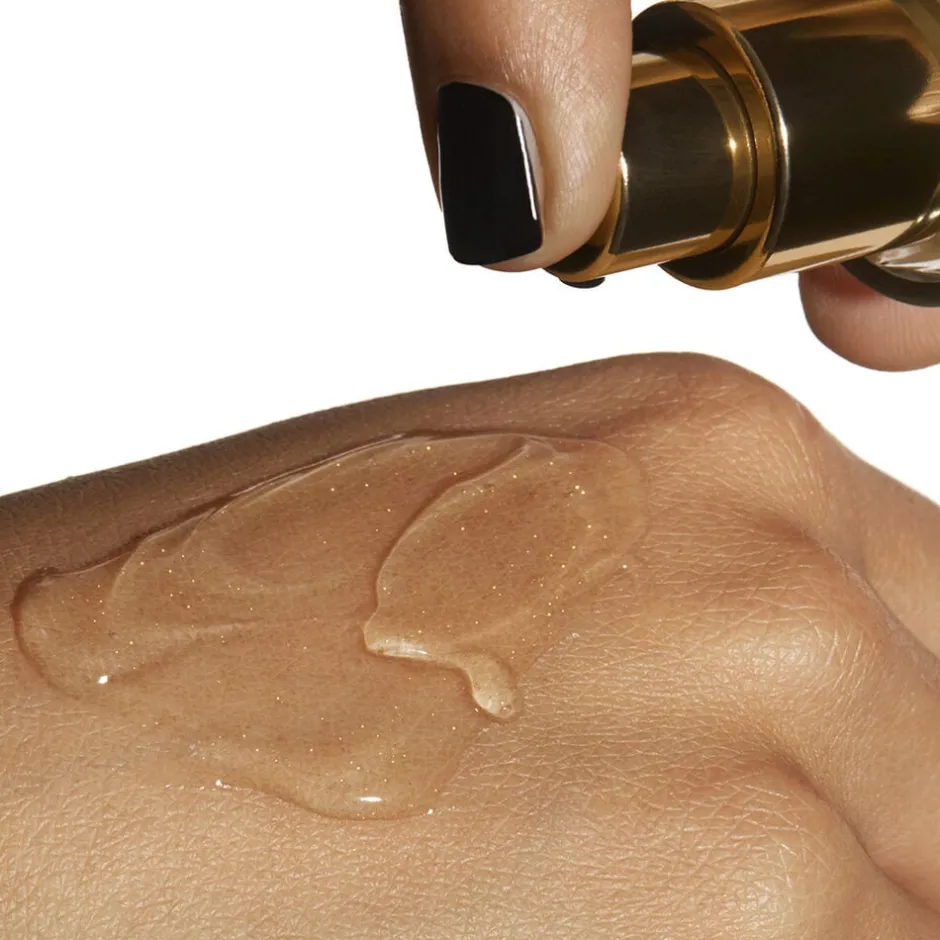 Denne universelle primer indeholder en speciel udviskende teknologi og giver lidt diskret guldglimmer samt skaber en ultimativ strålende glød.