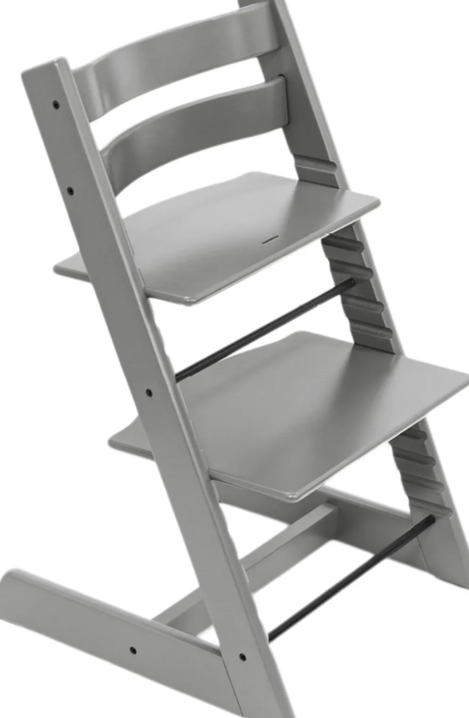 Tripp Trapp stolen er designet, så den passer til både barnet og til dit spisebord, da både sidde- og fodplade kan justeres i højde og dybde, så barnet sidder behageligt og ergonomisk korrekt, uanset alder ved korrekt indstilling af pladerne.