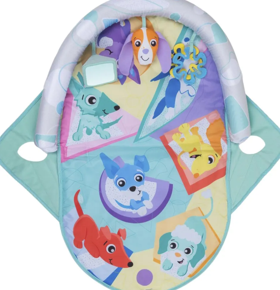Et dejligt aktivitets tæppe fuld af glade farver og søde rangler. Tæppet kan foldes så barnet også kan få glæde af det på maven. Nemt at at pakke væk og fylder ikke meget på turen. Fra Nyfødt