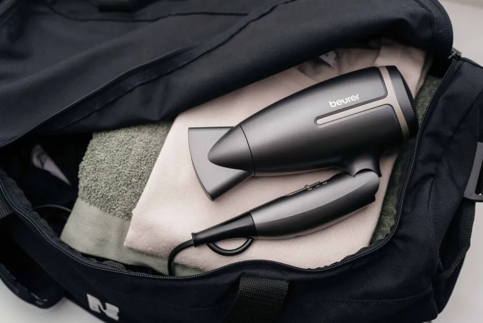 Du får en kraftfuld og kompakt rejsehårtørrer, som kan foldes sammen