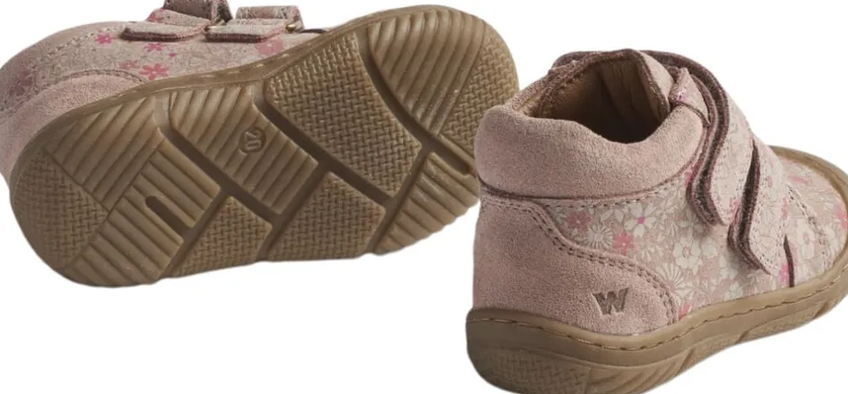 Prægåere med print og dobbelt velcrolukning til din tumling. – Dobbelt velcrolukning for justerbarhed – Signaturprint – LWG-certificeret læder – Krom- og metalfrit læderfor – Genanvendt TR-gummisål med tåbeskyttelse Wheat’s prægåere er lette, fleksible og behagelige for dit barn at have på og er designet til at beskytte de små fødder, når de begiver sig ud på deres første eventyr. Denne sko har dobbelt velcrolukning for nemt at træde i dem, og de er fuldt justerbare for den perfekte pasform. Prægåeren er lavet af ruskind fra LWG-garverier og har et blødt krom- og metalfrit garvet læderfor for at sikre, at der ikke kommer giftige materialer i berøring med huden. Den har en indlægssål af latex, der er betrukket med krom- og metalfrit garvet læder for at sikre høj komfort. Latex er et naturligt materiale, der giver god støddæmpning til fleksible skridt. Ydersålen er lavet af genanvendt TR, som er meget let og giver god trækkraft og fleksibilitet. Den er designet til at dække tæerne for at tilbyde ekstra beskyttelse. De har almindelige størrelser og giver god støtte til dit barns fødder. Anbefalet vækstmargin: 1-1,5 cm Indvendig mål: Størrelse 19 = 12,3 cm Størrelse 20 = 13,0 cm Størrelse 21 = 13,7 cm Størrelse 22 = 14,2 cm Størrelse 23 = 14,9 cm Størrelse 24 = 15,8 cm Størrelse 25 = 16,4 cm Størrelse 26 = 17,0 cm — Ydermateriale: LWG-certificeret ruskind Foring: Krom- og metalfrit læder Indlægssål: Blød latexindlægssål beklædt med krom- og metalfrit læder Ydersål: Genanvendt TR