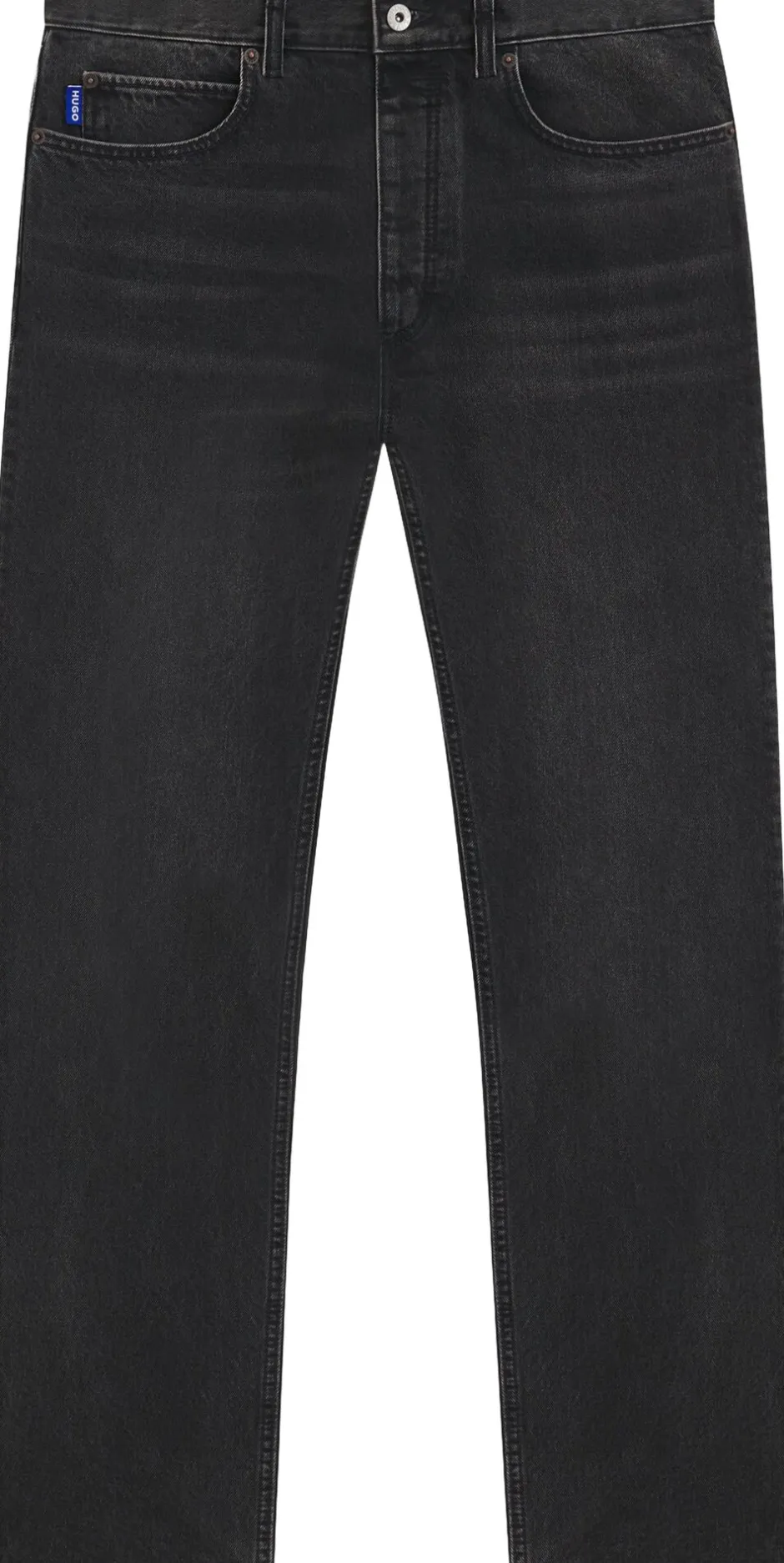 Disse jeans fra HUGO Menswear er en casual essential med autentisk slidt look på sort, kraftig denim. Med regular fit og lige ben.