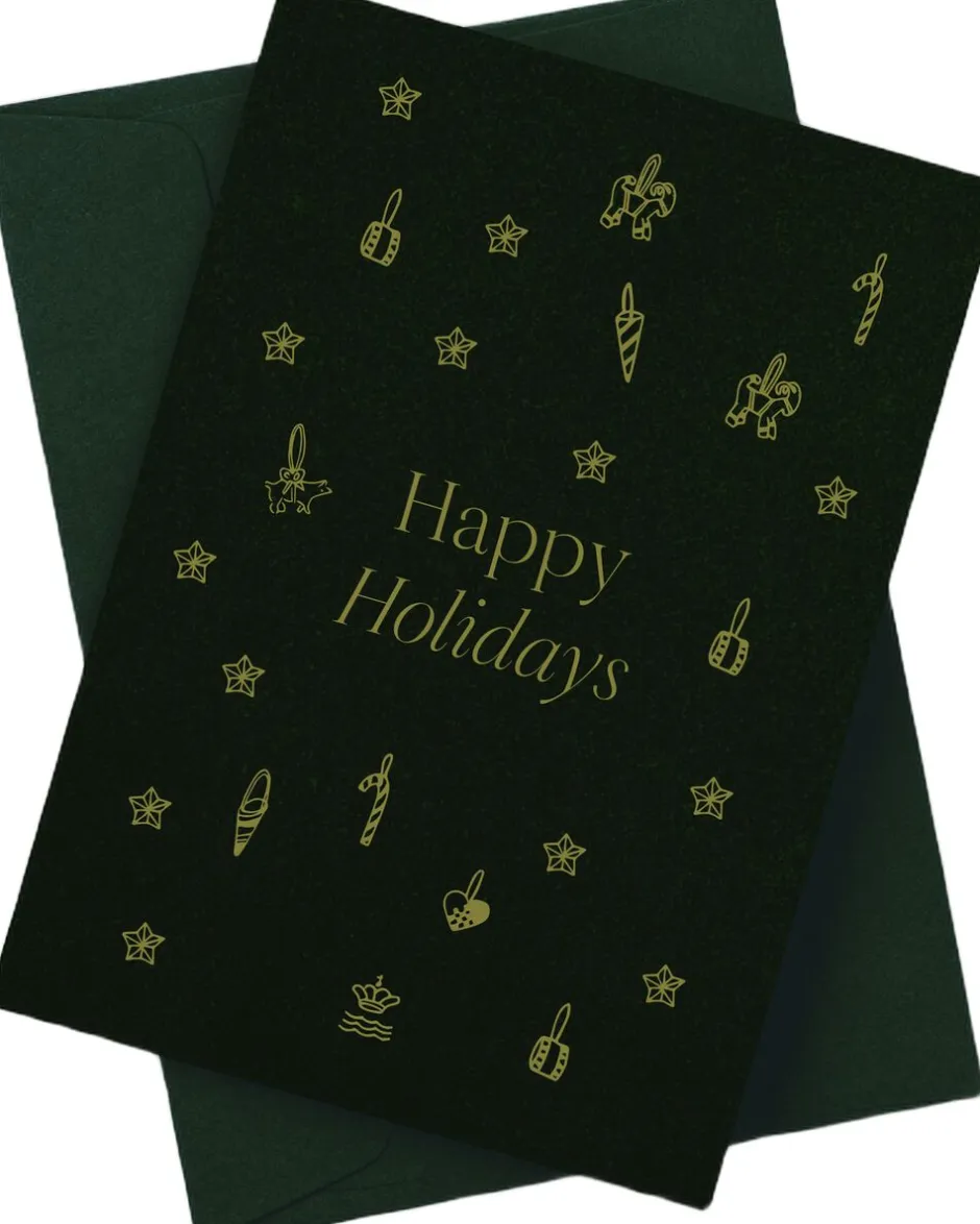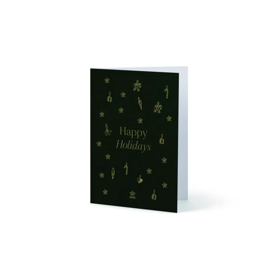Send årets julehilsen med Royal Copenhagens julekort, smukt dekoreret med klassiske symboler på julen kræmmerhuse, julehjerter, stjerner og slikstokke. Kortet indfanger essensen af højtidens magiske stemning og gør din hilsen til en særlig gestus i den mest hjertevarme tid på året.