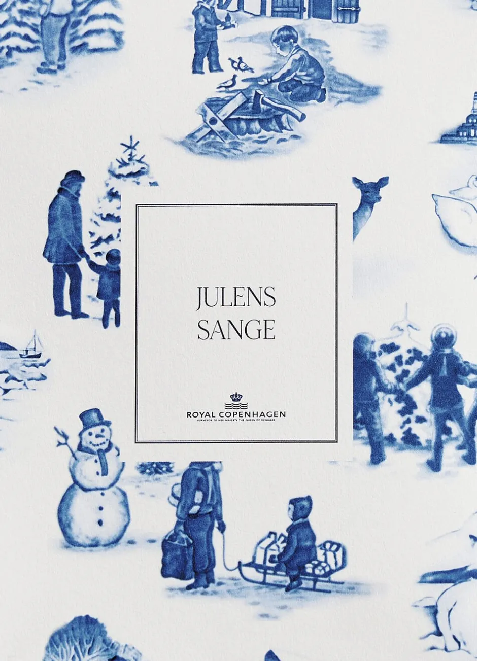 De fine blå illustrationer i sanghæfterne stammer fra de traditionsrige Royal Copenhagen og Bing & Grøndahl juleplatter. Sanghæftet indeholder 14 klassiske og elskede julesange- og salmer.