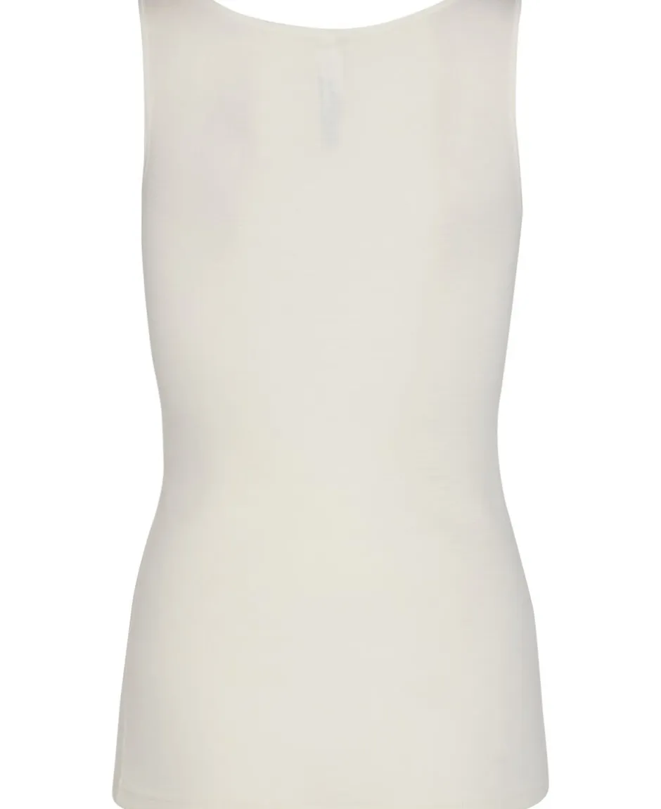 Top med brede stropper og U-udskæring. Toppen er udsmykket med en elegante meshkant.