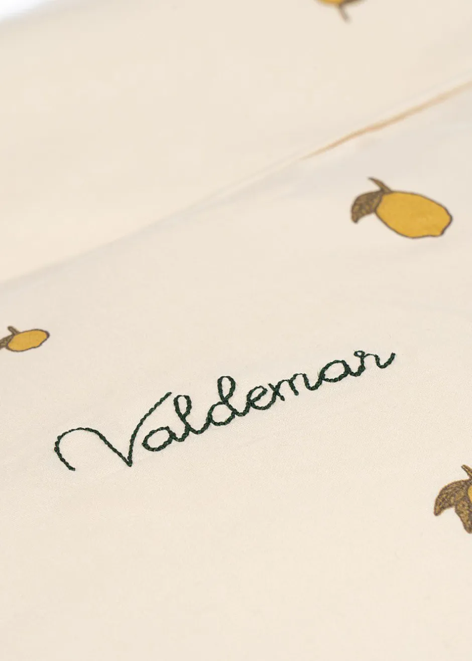 Junior sengetøj fremstillet i 100 % økologisk bomuld. Lukkes med lynlås.
