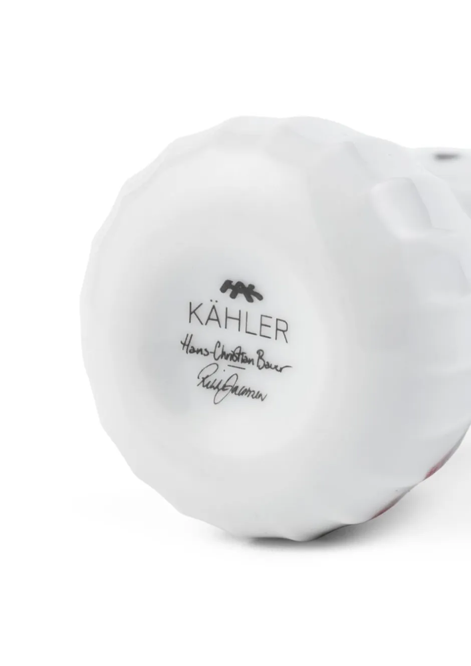 Juletraditioner og håndværkstraditioner i skøn forening. Med familien af snemænd fra Kählers juleserie Hammershøi Christmas bringer du enkelt og autentisk julestemningen ind i boligen med glade smil og hyggelige julemotiver, der matcher seriens øvrige dele og fuldender julehyggen, samtidig med at du kan nyde nostalgien i Kählers håndlavede designtraditioner. Gå en tur i haven, parken eller skoven og find jeres egne små kviste, der kan bruges som arme til seriens søde figurer. Måske som en ny, hyggelig juletradition den 1. december. På den måde bliver snemændene endnu mere personlige og betydningsfulde. Vær opmærksom på at de medfølgende arme til både den stående og hængende familie af snemænd udelukkende er vedlagt som inspiration til, hvordan du kan personliggøre dine Kähler-snemænd i din helt egen DIY-stil. Snepigen har en lille charmerende hue på, et varmt halstørklæde og en halskrave, for det er vigtigt ikke at fryse også selvom man er en snemand. Hun måler 8 cm i højden og 4 cm i diameter og er udformet i bløde linjer med Hammershøi-seriens ikoniske riller, der kendetegner Hans-Christian Bauers stel og bordpynt. Denne model er den stående udgave af Snepigen, men du kan også få hende som ophæng. Så der er frit valg. Skab dit eget snelandskab i vinduet, på hylden eller på julebordet, eller lad hele familien pynte på juletræet eller på smukke grene i en flot vase. Kählers snemandsfamilie består af Snemanden, Snekonen, Snedrengen og Snepigen, der alle på forskellig vis er dekoreret med motiver fra Hammershøi Christmas-serien malet i akvarel af Rikke Jacobsen og overført til det snehvide porcelæn. Motiverne er klassiske julemotiver som julehjerter, kræmmerhuse og gaver i en autentisk, hyggelig og håndmalet stil, som man slet ikke kan undgå at komme i den helt rigtige julestemning af.