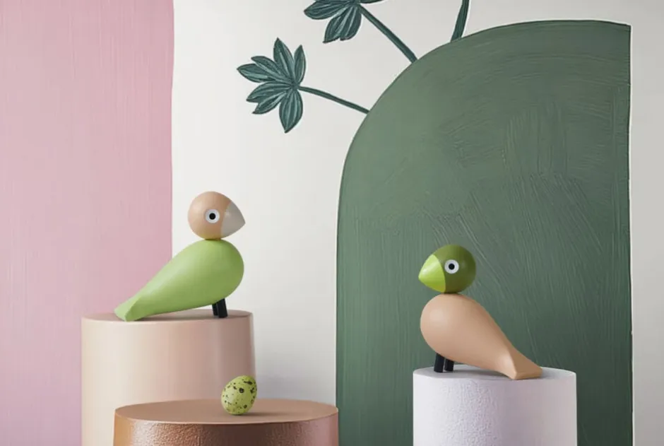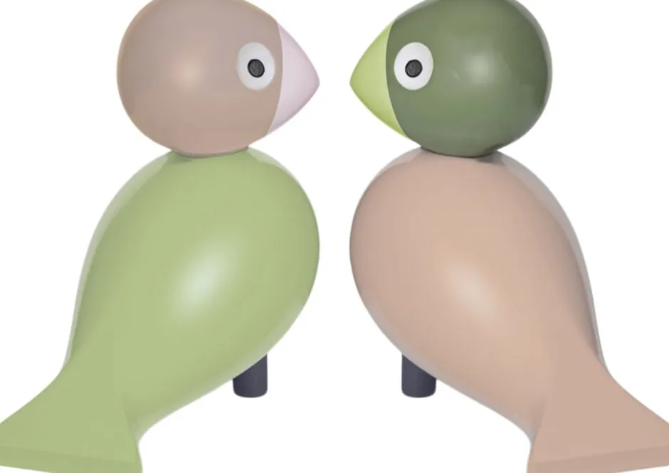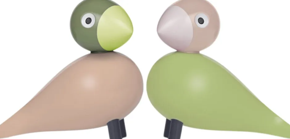 Fugle mødes og sød musik opstår. Serien af sangfugle og turtelduer er elskede klassikere i dansk design og evige symboler på tidløs kærlighed. Og med dette både moderne og klassiske turtelduepar får du to unikke fugle i det ikoniske Kay Bojesen-formsprog, der med deres harmoniske farver og charmerende udtryk omfavner ansvarlighed og folder vingerne ud med masser af liv og sjæl og lander lige i hjertet hos både store og små. Den ene turteldue har lysegrøn fjerpragt, rosa næb, sandfarvet hoved og lyseblå ben, mens den anden prydes af en rosa fjerpragt, lysegrønt næb, grønt hoved og sandfarvede ben stort set samme farvepalet for begge turtelduer. Begge turtelduer måler 9 cm i højden og er fremstillet med stor præcision i FSC®-certificeret bøgetræ, der garanterer, at træet til produktionen er plantet, dyrket og fældet ansvarligt. De farvede turtelduer er inspireret af tidens farvetrends og emmer af et ægte vidnesbyrd om kærligheden til originalt dansk design og fascinationen af de klassiske træfigurers skønhed. Samtidig markerer de en unik samhørighed, et samlende fællesskab i en nogle gange lidt for fragmenteret verden. Fuglene ved du, hvor du har. Og de har hinanden. Med simple grafiske virkemidler er de ikoniske sangfugle i årevis blevet bragt til live i et væld af farver alle i Kay Bojesens helstøbte design med det velbalancerede udtryk, der fremstår indbydende, roligt og rart. Nyd dem derhjemme, sammen eller hver for sig. Eller giv den ene eller dem begge til en, du har kær. Uanset hvordan du udfolder Kay Bojesens originale fortællinger i træ, så har turtelduerne en helt særlig appel til både børn og voksne og er en god gaveide til dåb, fødselsdag, studentergave, jubilæum eller bryllup. En klassiker, der flyver med dig gennem hele livet lige fra børneværelset til at blive et elsket designikon i egen bolig.