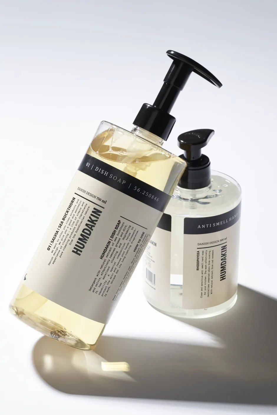 KITCHEN KIT 750 ml 01 Dish Soap + 500 ml Anti Smell Hand Soap PET recyclable plastic Packed in box In this kit, you get exactly what you need for an effective environment to your kitchen- 750 ml 01 dish soap and 500 ml anti smell hand soap. The 01 dish soap is a liquid detergent that effectively removes grease and food residue. The Humdakin dish soap is both effective, fragrant and decorative in your kitchen – perfect for daily kitchen cleaning and styling. The Anti Smell hand soap is a nurturing hand soap with a lovely fragrance, that efficiently cleans your hands and immediately removes odors from seafood, onions, cheese, garlic etc. The perfect set for a clean kitchen and for clean and fresh hands! Ingredients 01 dish soap- Between (no less than) 5% and (no more than) 15% anionic surfactants, less than 5% amphoteric surfactants, preservations agents (2-phenoxyethanol) and perfumes. Ingredients anti smell hand soap- Aqua, Sodium Laureth Sulfate, Cocamide DEA, Sodium Chloride, Cocamidopropyl Betaine, Glycerin, Parfum, Citronellyl Methylcrotonate, Polyquaternium-7, Lactic Acid, Hydrolyzed Rhodophycea