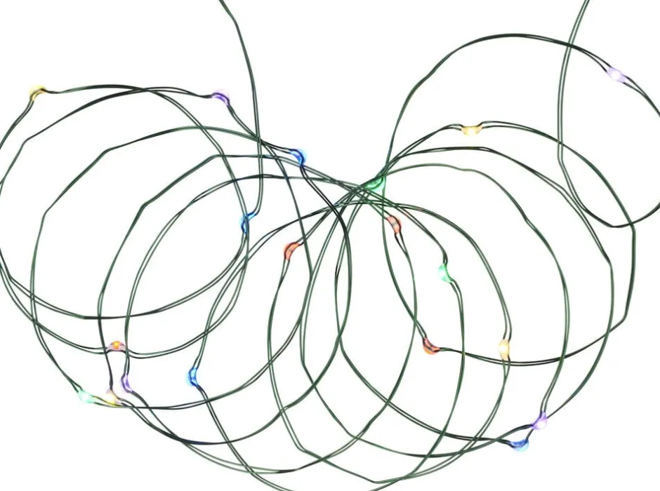 Sirius Batteri-Lyskæden Knirke har 40 meget små fine (0,5 cm) LED lys. Kæden er lavet med en fin tynd grøn ledning og pærerne er et mix af forskellige farver. Meget dekorativ kæde. Kæden har en udendørs batteriboks, og er velegnet til at skabe en fin stemning ude i haven. Kæden er 3,9 meter lang, og har et varmt naturligt lys. Dekorationen er batteridrevet og har en indbygget timer-funktion, der slukker lyset automatisk efter 6 timer, hvis du ikke selv slukker dem. Efter 18 timer tænder lyset igen, og sådan vil det fortsætte, hvis du ikke bruger sluk knappen. Batterier medfølger ikke. Der skal isættes 3 AA Batterier. Kan benyttes både indendørs og udendørs.