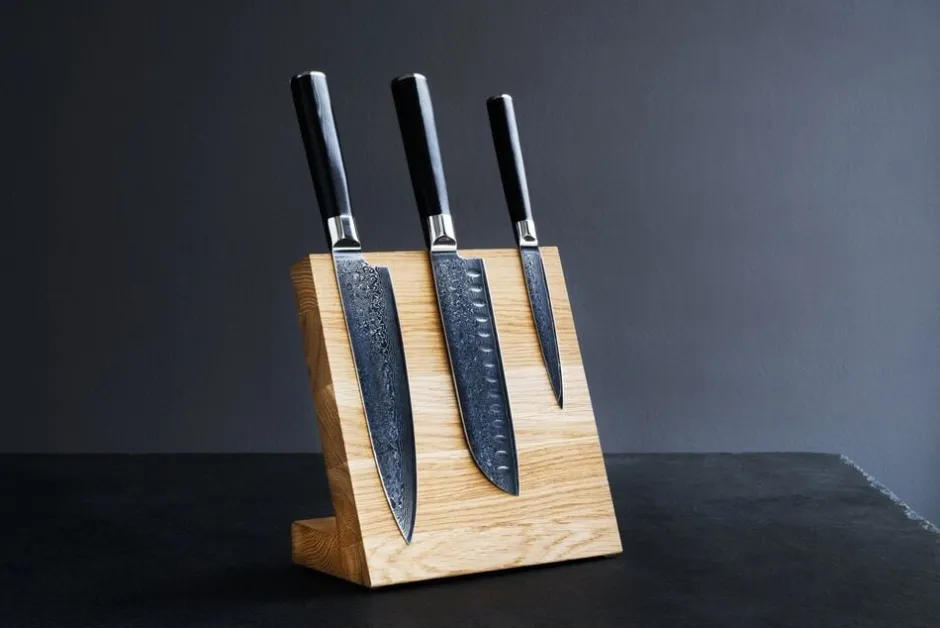 Pas godt på dine køkkenknive, og opbevar dem på en magnetisk knivblok i massivt egetræ fra europæiske skove. Knive købes seperat.