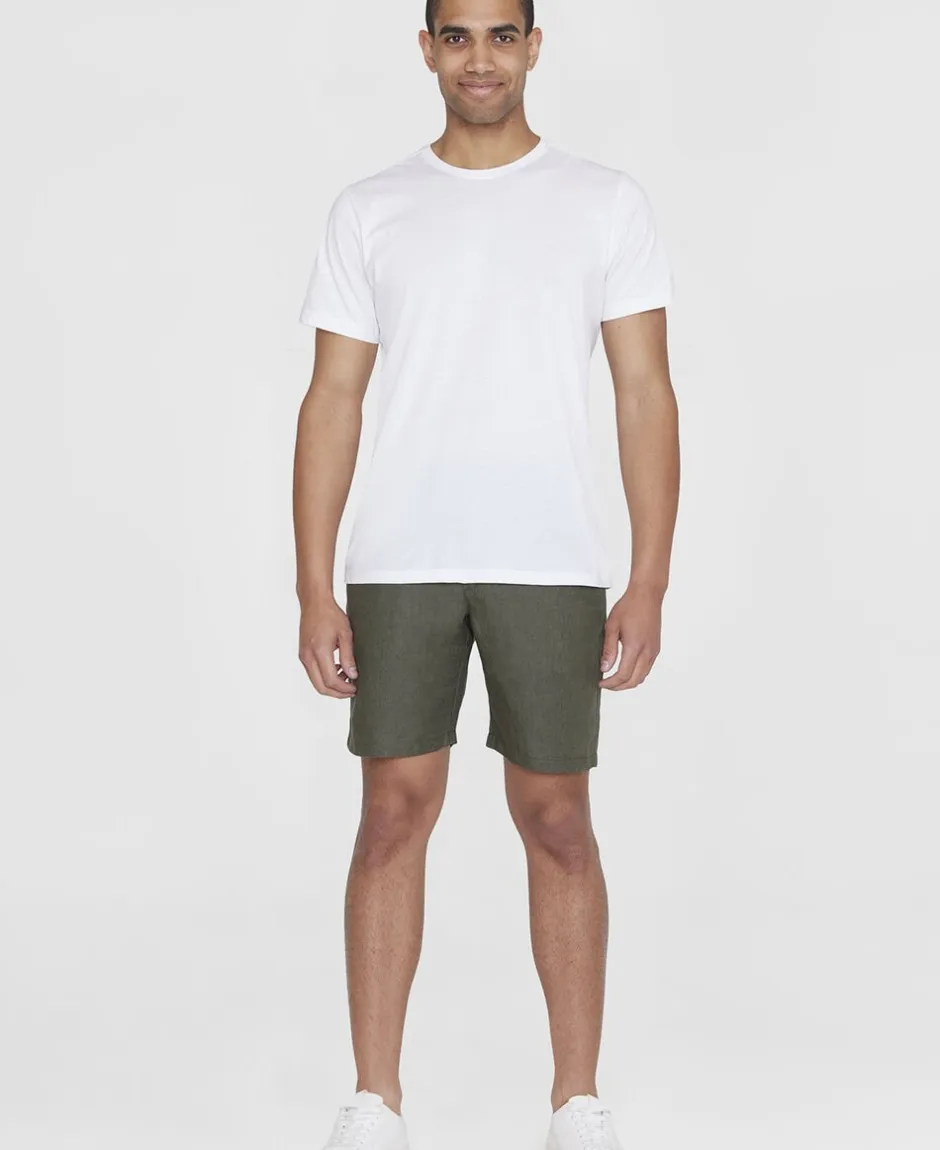 CHUCK-linnedshortsene er et bevidst valg og en fantastisk ledsager gennem den solrige sæson. De har en almindelig pasform og er lavet af 100% økologisk hør for at holde dig kølig og komfortabel hele dagen lang. Shortsene har bæltestropper i taljen, skrå forlommer og baglommer.