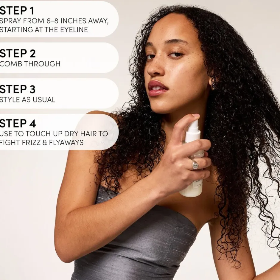 En alt-mulig løsning indenfor Leave In-spray med termisk beskyttelse, der reducerer krus og flyvsk hår og giver perfekt glat, silkehår. Blødgør, af-filtrer og efterlader håret glat, skinnende og medgørligt, og tæmmer samtidigt flyvsk hår og plejer de tørre spidser. Fri for parabener og natriumklorid.