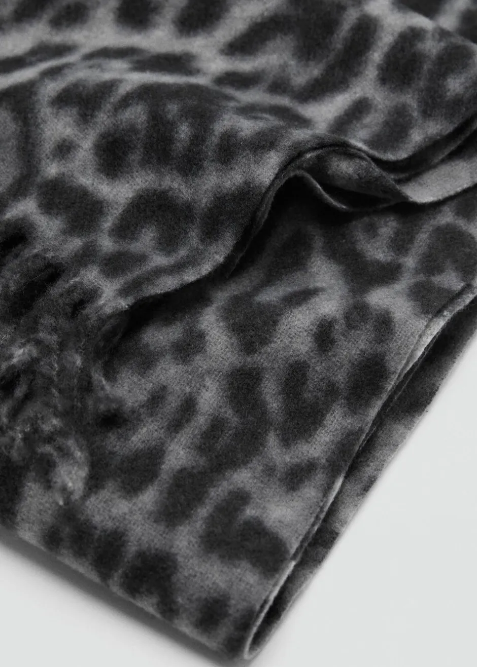 Leopard scarf with fringes-MANGO