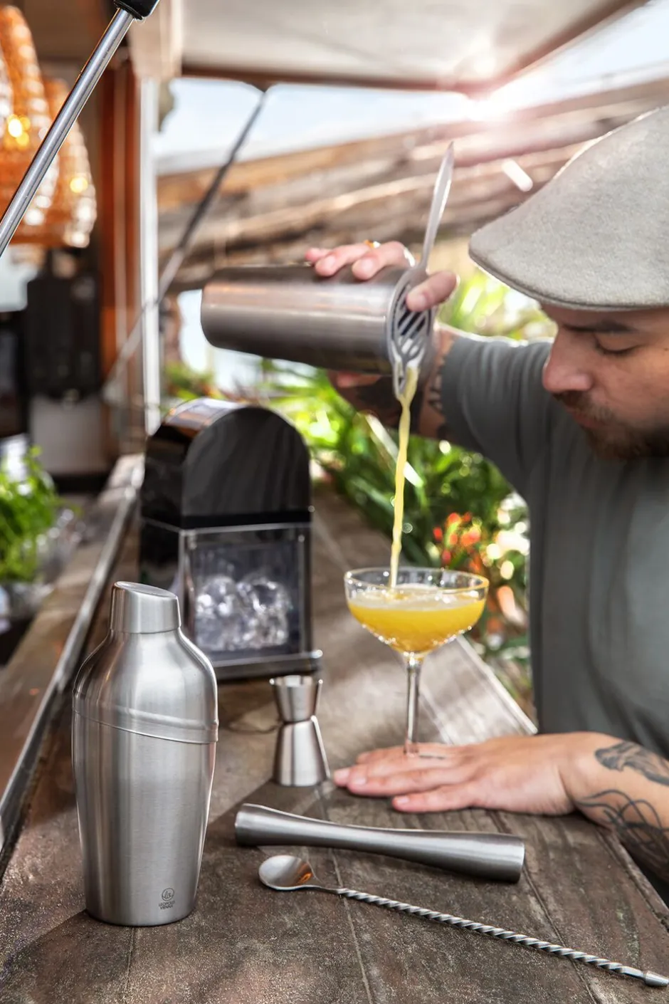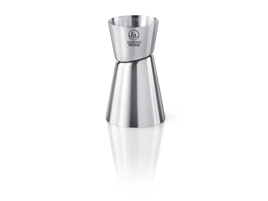 Cl mål til spiritus der kan vendes, således at der er to størrelser. Den ene ende indeholder 2 cl. Den anden ende 4 cl. udført i børstet rustfrit stål. Et must i enhver hjemmebar. Tåler maskinopvask. Enkelt og gennemført design fra tyske Leoplod Vienna, nu samlet under det hollandske selskab Bredemeijer Group BV.