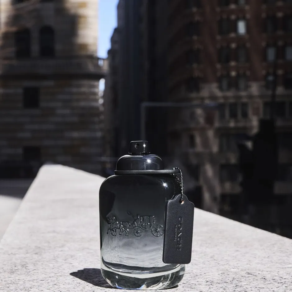 Coach For Men Eau de Toilette tager dig på en rejse af uendelige muligheder og fremkalder en følelse af frihed, der kommer fra energien og spontaniteten fra New York City. En moderne duft, der kombinerer friske, energiske topnoter og en varm sensualitet i basenoterne fra amber og træ. Maskulin, men samtidig raffineret, duften starter med frisk grøn Nashipære, der kontrasteres af krydret kardemomme og afsluttes af en kompleks base af vetiverrod, hvilket skaber en aromatisk og træagtig duft. Signaturduften blev kreeret af Anne Flipo og Bruno Jovanovic. Flakonen er symbolet på Coach brandet og har de samme ikoniske elementer som kvindeduften: drejelås, hængemærke og hestevognsgravering. Flaskens lakering har en mørkegrå farveovergang med blå undertoner og en stålfarvet drejelås. Indpakningens lædertekstur er en hyldest til den luksuriøse arv fra Coach lædervarer. Den sort-blå tone får kontrast med et fremtrædende sølvlogo.