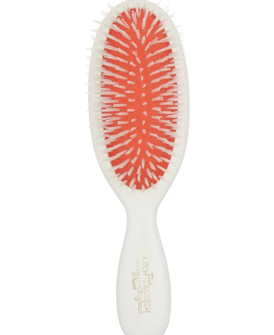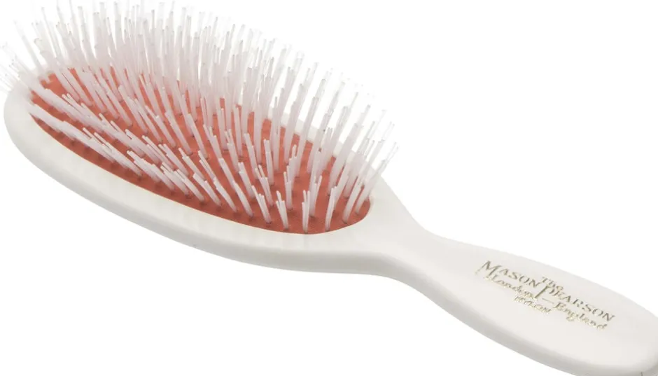 Mason Pearson BN4 er den mindste hårbørste i sortimentet og er lavet af ren nylon. Mason Pearson børsten i nylon er kun beregnet til udredning af filtret hår og har ikke den samme plejende effekt som de øvrige Mason Pearson børster lavet af ren vildsvinehår eller i et mix af vildsvinehår og nylon.