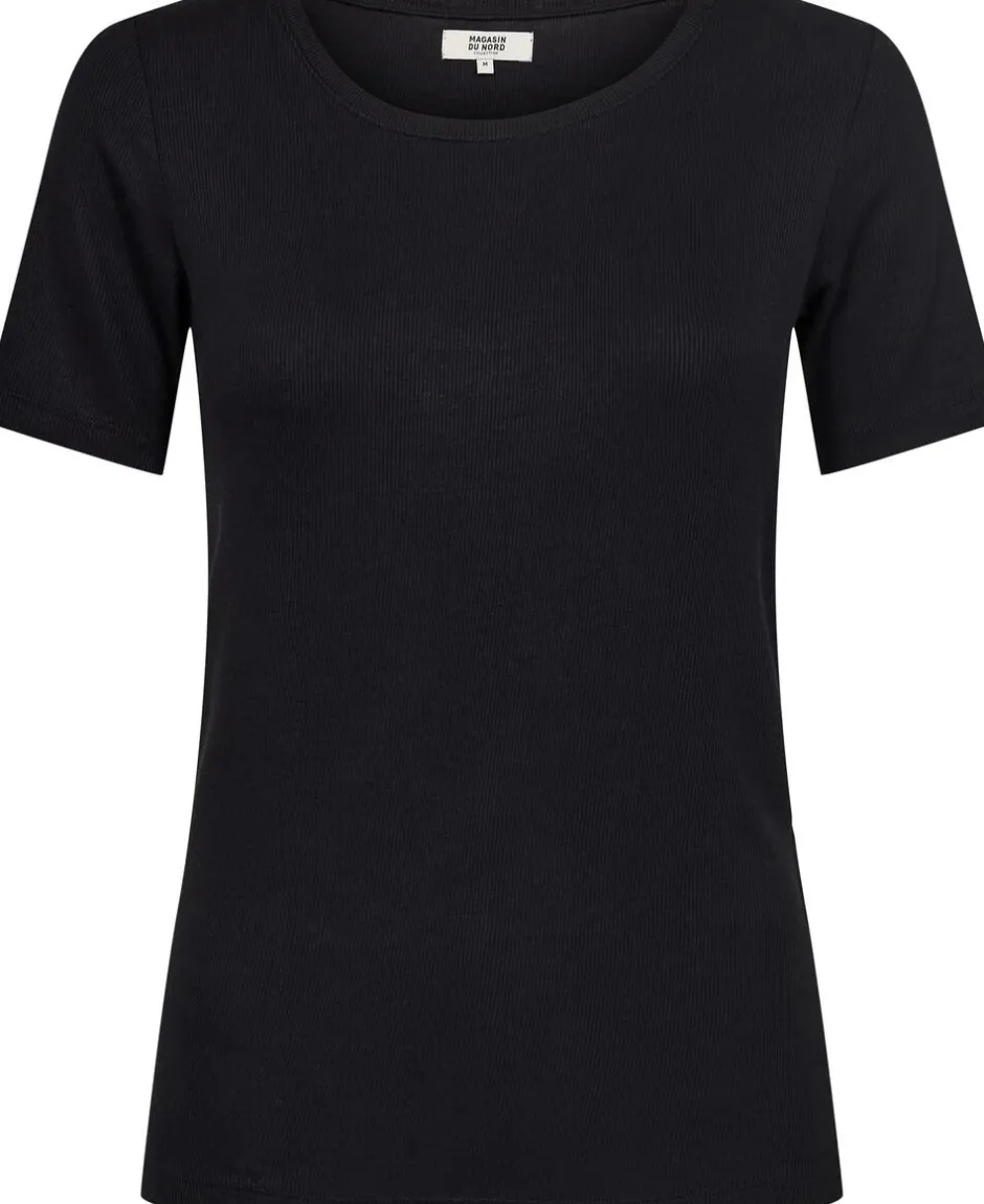 T-shirt fra Magasin du Nord Collection i den fineste kvalitet af 95% ECOVERO viskose. T-shirten er enkel i modellen med en fin ribbet struktur, korte ærmer, rib langs den runde halsudskæring samt en tætsiddende pasform. En skøn T-shirt, der er et musthave i basisgarderoben. ECOVERO is a trademark of LENZING AG. ECOVERO viskose er lavet af træer fra skove, der har fokus på ansvarlig skovbrug og ansvarlighed for mennesker og miljø. Selve processen, hvor træet omdannes til viskose, foretages i et lukket kredsløb og med en teknologi, der både nedbringer brugen af vand og gør det muligt at genanvende de kemiske stoffer, der indgår i processen.