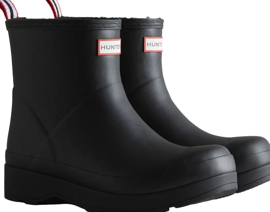Spil kort isoleret støvle. Håndlavet polyesterfor imiteret pels og tilføjet termisk isoleringsindersål. Træk i tappen for nem fodadgang og fladere sål med vinklet blokhæl for ekstra komfort. Vandtæt.