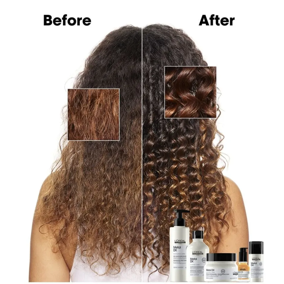Dette sæt indeholder ministørrelser: Metal DX Shampoo 100ml + Metal DX Mask 75ml + Metal DX Concentrated Oil 30ml.