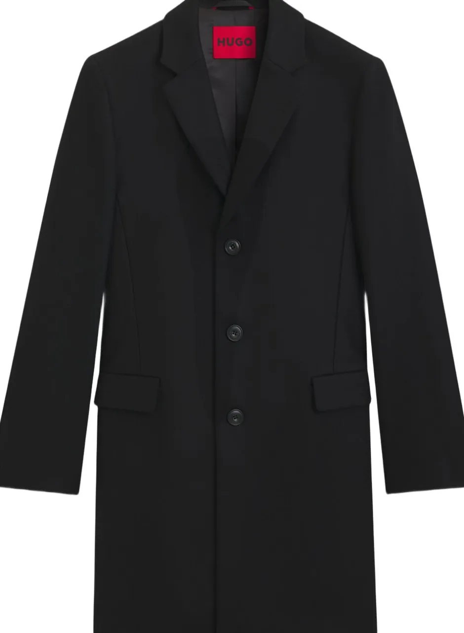 Denne frakke fra HUGO herretøj er en klassisk uundværlig forretning og er fremstillet i en varm blanding af ny uld og luksuriøs kashmiruld. Skåret til en defineret pasform