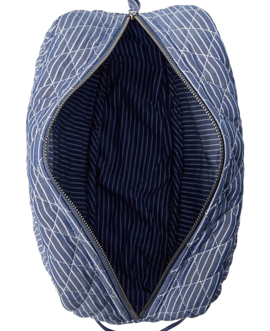 Toilettaske fra Magasin du Nord Collection i den blødeste kvalitet af 100% økologisk bomuld med GOTS-certificering. Toilettasken består af ét stort rum med lynlåslukning samt mindre inderlommer. Derudover har toilettasken fine vatterede syningsdetaljer. En skøn toilettaske i den lækreste kvalitet.