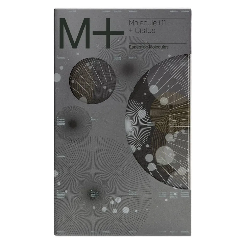 I Molecule 01 + Cistus møder Iso E Super den rå sensualitet i Cistus, hvilket skaber en strålende dybde et slør af varme, lethed og varighed. Cistus er en note, der bliver hængende som varme på huden. Det er en harpiks, tappet fra en vild middelhavsbusk klistret, gylden og intens. Duften minder om labdanum, men med en lysere karakter som amber badet i sollys. Røgede, mineralske og læderagtige undertoner tilfører en jordforbindelse til dens sødme.