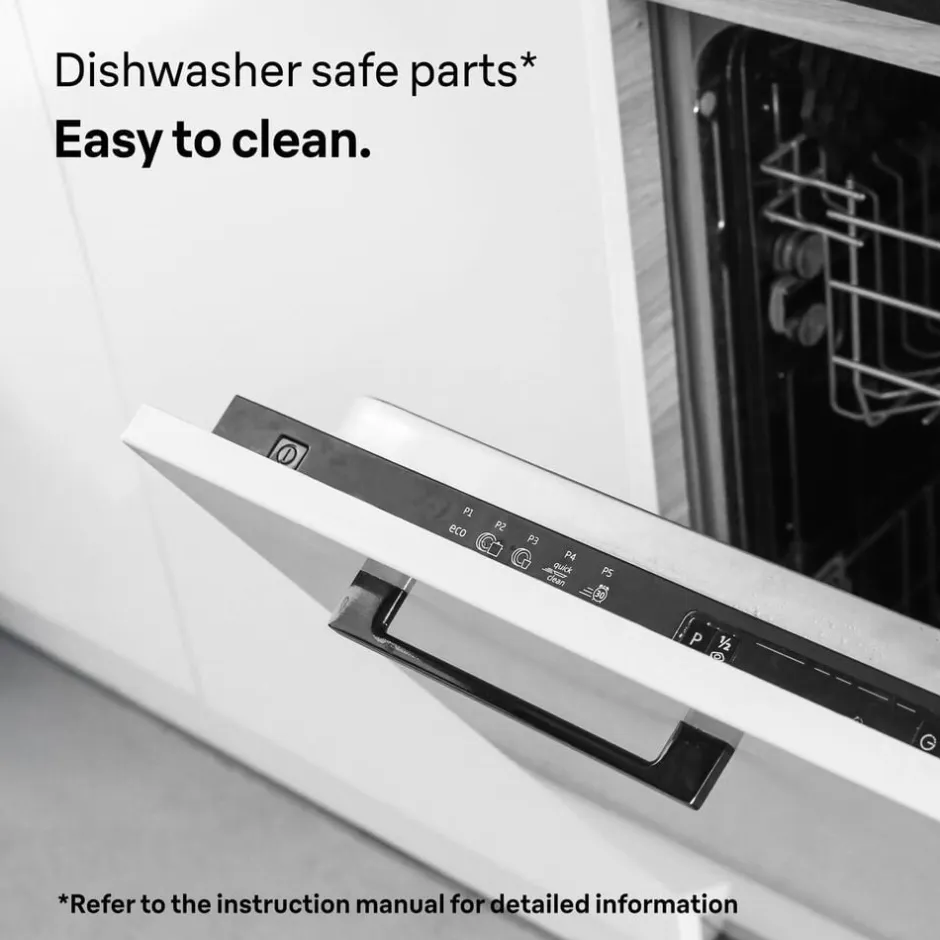 Det smarte EasyClick-system gør det nemt og hurtigt at skifte mellem forskellige tilbehørsdele, så du kan tilpasse blenderen til opgaven uden besvær. Du klikker ganske enkelt det ønskede tilbehør af og på,det tager få sekunder og kræver ingen værktøj.