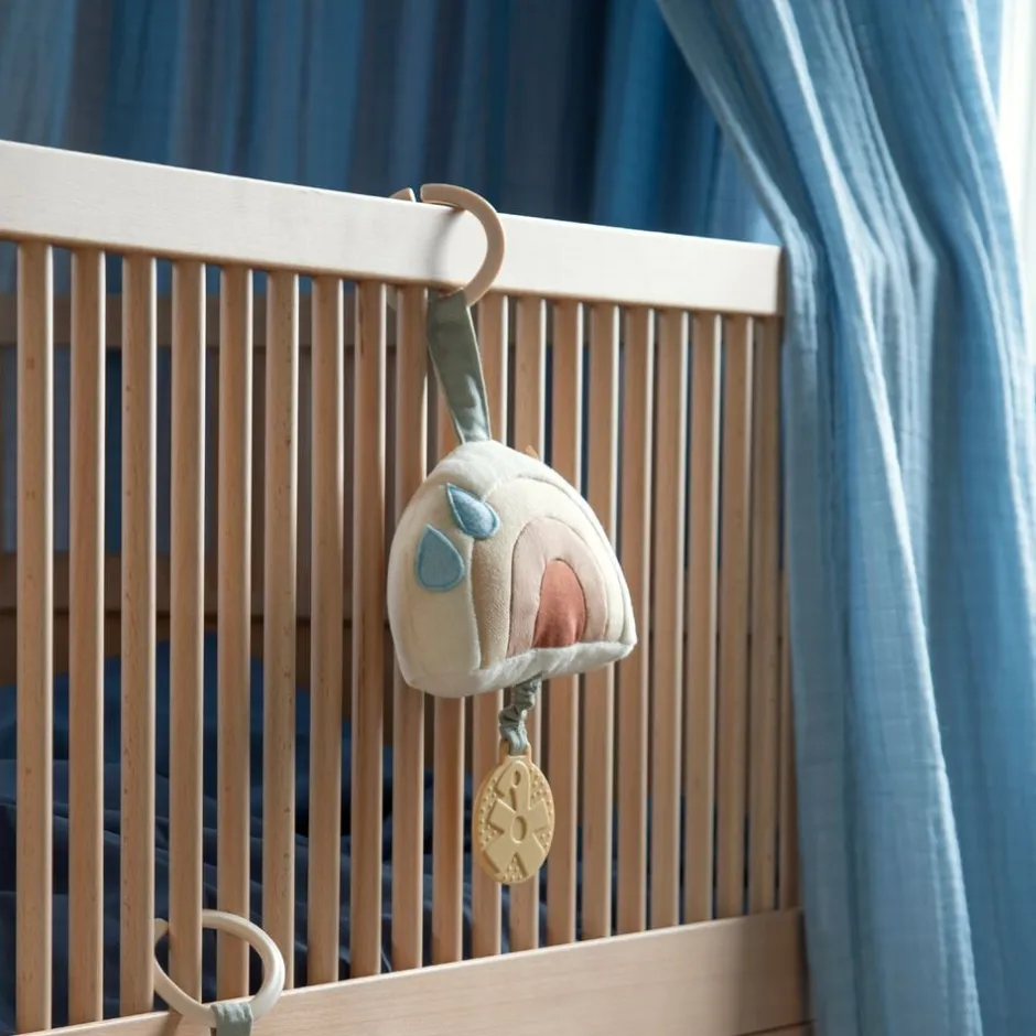 Musikuroen er designet med en C-ring, så den nemt kan fastgøres til sengen, aktivitetsstativet, autostolen eller andre steder, hvor den kan gøre nytte.