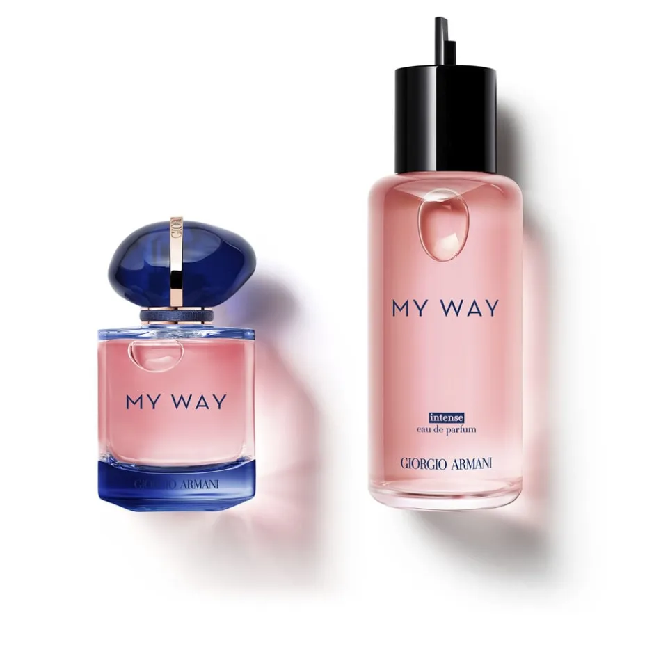 My Way Intense er en invitation til en rejse mod selvopdagelse, meningsfulde møder og ekstravagante oplevelser. En ekstravagant blomsterduft med et fængslende træagtigt duftspor, skabt af bevidst indkøbte ingredienser. Duften åbner med klare noter af orangeblomst fra Egypten. Et nyt intenst hjerte af tuberose fra Indien afslører en cremet og fløjlsblød facet af blomstersignaturen. I duftens bund tager sandeltræet fra Ny Kaledonien en vanedannende cremet drejning, hvor den møder en overdådig vanilje fra Madagascar. Den blå og guldfarvede hætte ligner et smykke og symboliserer en talisman, der indkapsler alle oplevelserne. Intensiteten af disse øjeblikke er indfanget i hætten og går videre i My Way Intense-flakonen, hvor glasset nu er indhyllet i gennemsigtige blå reflekser. Denne luksuriøse parfume kan genopfyldes og indeholder ansvarlige og bæredygtige ingredienser. Det er en talisman, der rummer alle mindeværdige møder. JEG ER, HVAD JEG OPLEVER.