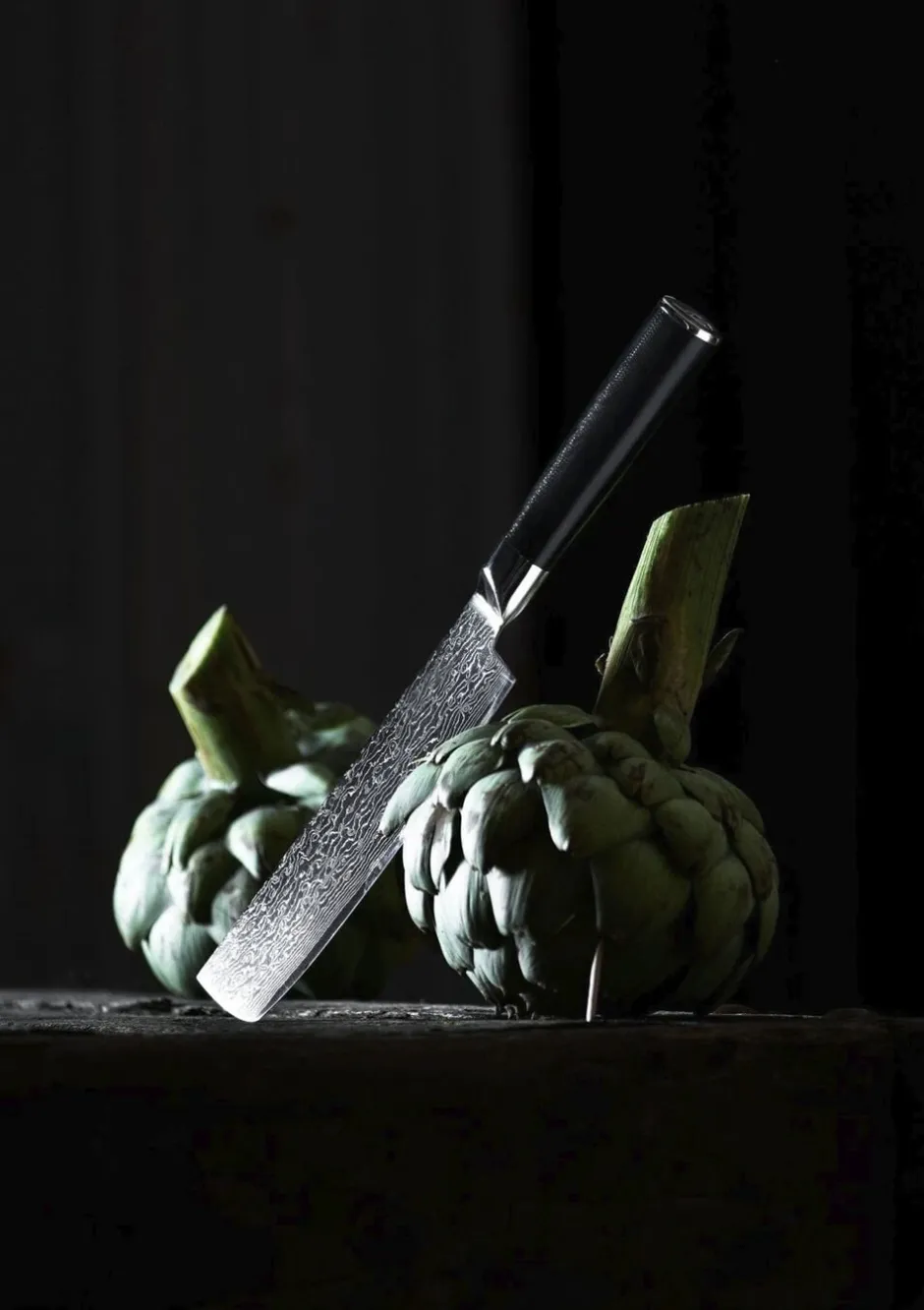 Kniven består af 67 lag stål og en kerne af VG-10 stål for ultimativ skarphed og holdbarhed. Det her er grøntsagskniven som du kan have glæde af mange år endnu.