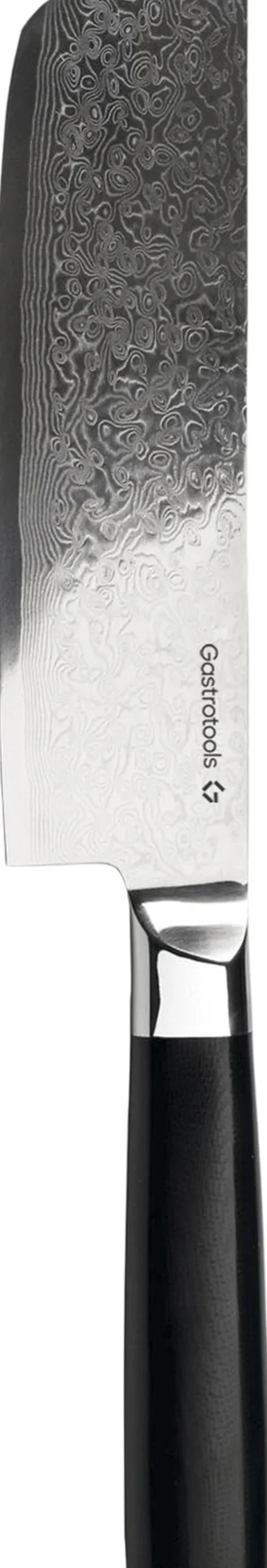 Karakteristisk og populær Nakiri grøntsagskniv. Denne kniv er perfekt til at snitte grøntsager. Det brede knivblad gør, at du sikkert kan snitte dine grøntsager med knoerne mod bladet det gør både at du mindsker risikoen for at skære dig, men også at du kan snitte dine grøntsager mere præcist. Samtidig er kniven udstyret med et vuggeskær, hvilket gør den perfekt til selv de mindste grøntsager eller til at hakke dine krydderurter. Skæftet i G10-kompisit giver en ekstraordinær komfort og er også antislip, hvilket gør at du kan snitte dine grøntsager sikker, selv med våde hænder.