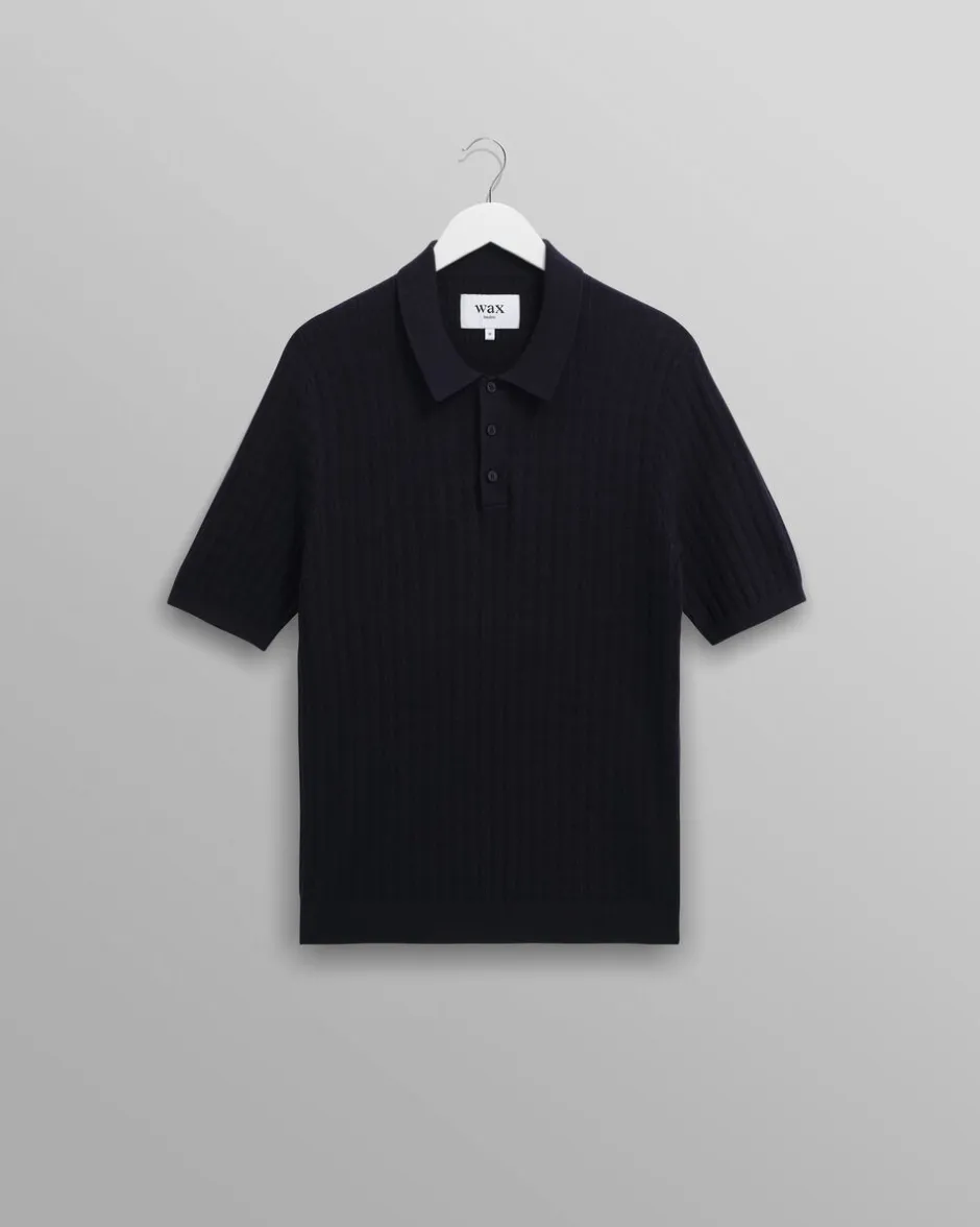 Napoli-poloen har en almindelig pasform og er fremstillet af en blød blanding af bomuld og kashmir. Design med lodret diamantstribe Design, ribkrave, manchetter og kant samt knapstolpe. Denne marineblå farvekombination er en fast bestanddel af Voks Voks AW25-kollektionen AW25