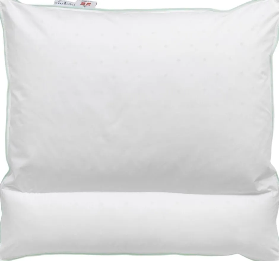 NeckSupport, ekspertstøtte og klassisk komfort i én pude. Nogle nætter sover du som en drøm, andre vender og drejer du dig. Derfor har vi skabt NeckSupport, en hovedpude, der kombinerer ergonomisk nakkestøtte med klassisk komfort. En syning deler puden i to kamre, et smalt kammer med ergonomisk støtte, der følger nakkens naturlige kurve, og et bredere kammer, der giver hovedet blød og stabil hvile. Uanset hvilken side du vælger, får du støtte, der holder hele natten. Sover du på siden, kan du folde puden for ekstra højde. Perfekt til dig, der vil prøve en ergonomisk pude, men stadig gerne vil kunne vælge. Klassisk dansk pudestørrelse 60 x 63 cm, der passer til dit almindelige hovedpudebetræk. Det er nemt at vedligeholde Nordic Sleep by Fossflakes produkternes gode egenskaber. Ryst nemt dine produkter op for at bevare volumen. NeckSupport er allergivenlig og kan nemt maskinvaskes ved 60 grader, det gør det let at holde puden ren og fri for støvmider. Undgå brug af skyllemiddel og vaskemiddel med enzymer. Fossflakes kan tørretumbles på uld eller silkeprogram. Tåler ikke høj varme. Er du i tvivl om din maskine kan overholde varmegraderne, så lad i stedet din pude lufttørre. Puden er certificeret i henhold til Oeko-Tex Standard 100 Class 1.