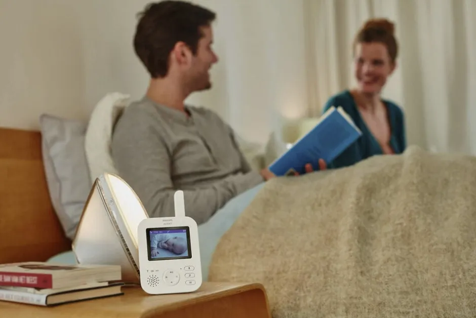 Philips Avent SCD882 gør det muligt at opretholde en sikker og privat forbindelse til dit barn til enhver tid. Hør dit barn i perfekt lydkvalitet, og se dit barn i krystalklare billeder (2,8″ LCD: 7,2 cm), uanset om det er dag eller nat.
