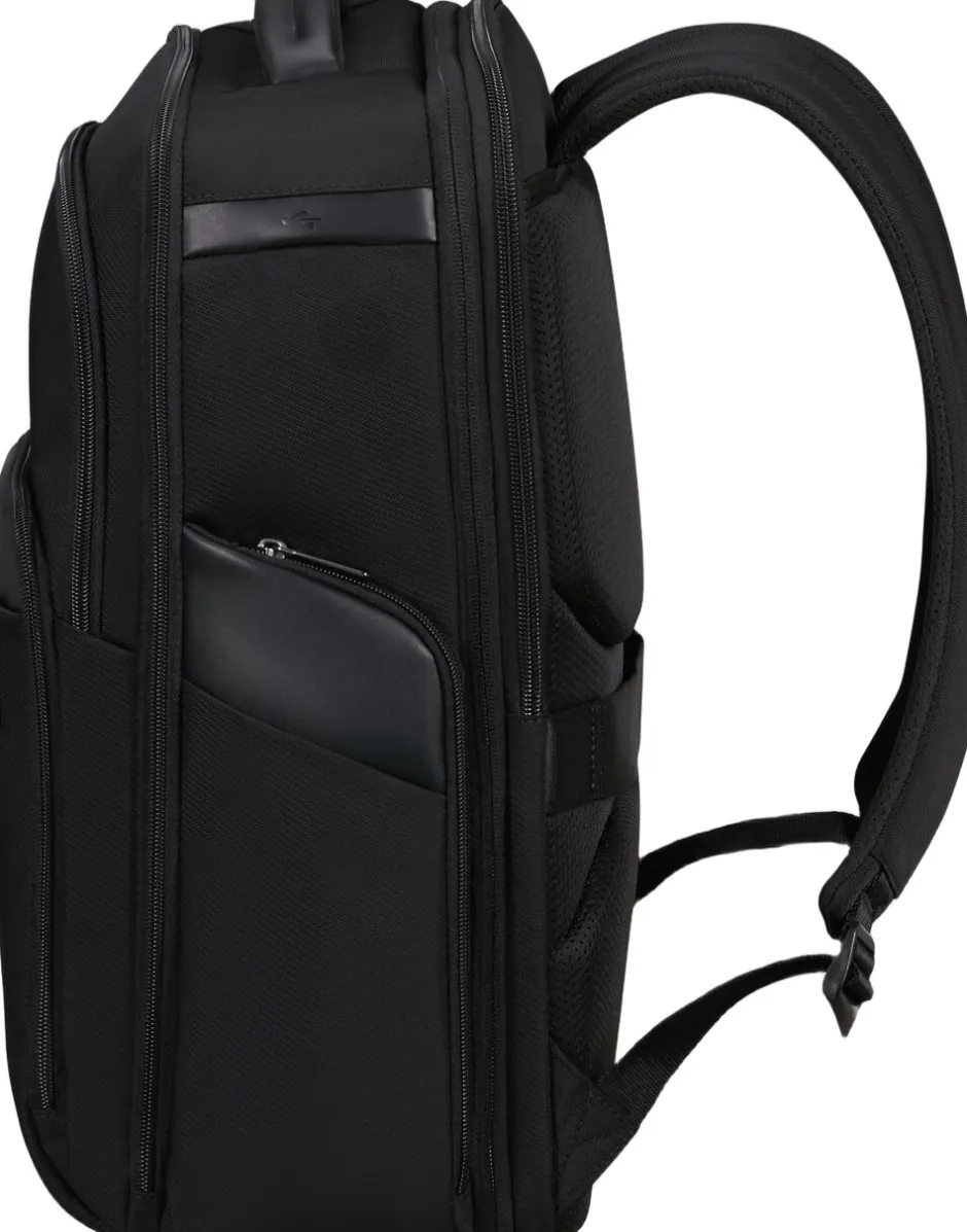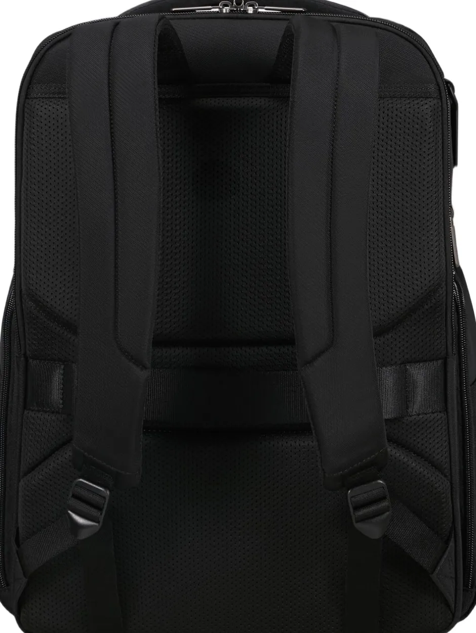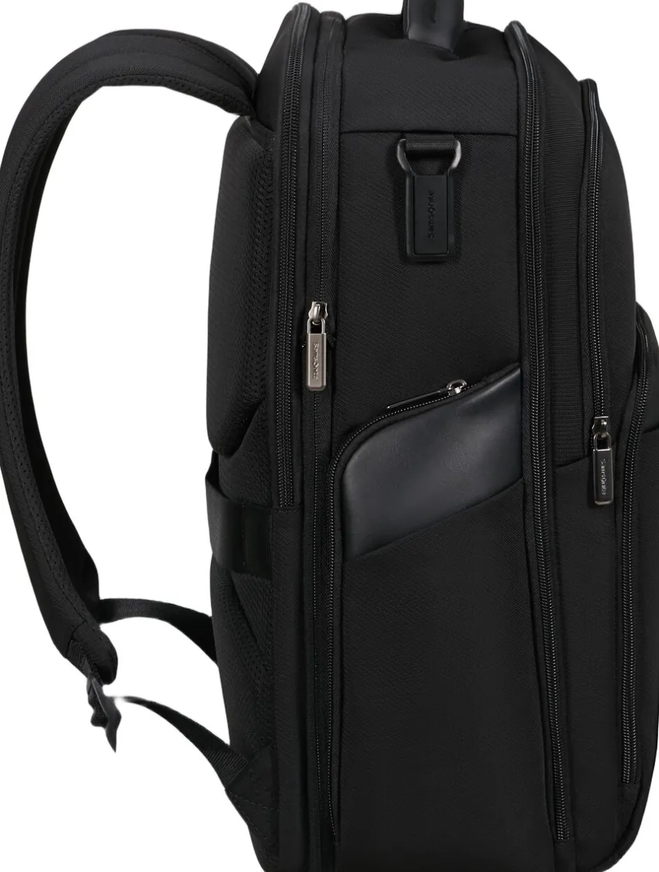 Computer rygsæk med plads til 17,3″ PC og 10,5″ tablet, mulihed for udvidelse, både det indvendige og udvendige stof er lavet af genbrugsplast, flaskeholder i siden, mulighed for personalisering med de medfølgende stickers, frontlomme med lynlås, ergonomiske stropper, rumindhold 28,5/32,5 l, vægt 1,2 kg. 2 års garanti.