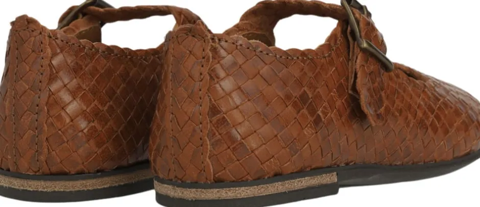 Håndflettet Mary Jane ballerina i læder. Ballerinaen har en rund snude,blød og fleksibel gummisål. Den øverste del af skoen er udformet i hvilket gør hvert eneste par unikt. Farve og mønster kan variere. BehDesignet i Danmark og håndlavet med kærlighed i Portugal. Mål altid ba
