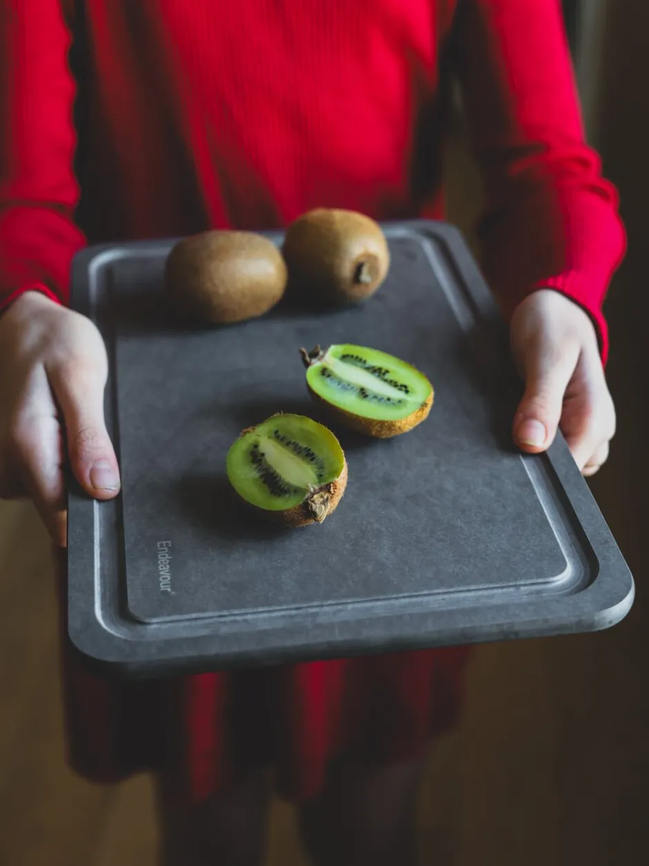 Et medium skærebræt, der gør det muligt at håndtere både fisk, kød, fjerkræ og grøntsager. Den praktiske saftrende gør det nemt at tranchere mindre stykker kød, uden at saften spildes eller vand fra grøntsager løber af. Medium Board Groove giver dig et skærebræt, der er råt, stilfuldt og utroligt slidstærkt.