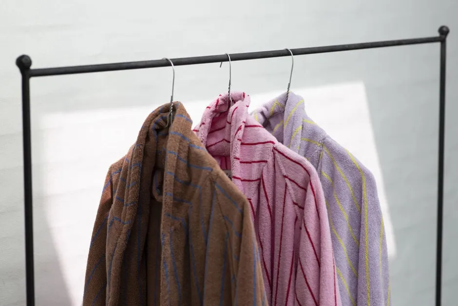 Giv dig selv et blødt krammed den luksuriøse Naram badekåbe. Badekåben har en generøs pasform oggiver god dækning – perfekt til når du kommerop af havet, poolen eller ud af badet. Naram badekåben har et klassisk, men moderne design med fine farver og striber. Badekåben kommer med sjalkrave, åben front, bæltelukning og to rummelige lommer – perfekt til afslappede morgener eller bare til hygge i sofaen. Naram badekåben er OEKO-TEX® certificeret og lavet af 100 % kæmmet bomuld vævet i en 385 gsm-kvalitet som giver en høj absorberingsevne. Den specielle kæmmeteknik polerer bomuldsfibrene, så de opnår glans og en silkeblød fornemmelse ved hver brug. Fås i to størrelser: S/M og L/XL. Mål fra nakken bagpå til bundsøm: S/M = 122 cm og L/XL = 138 cm. Hvis du er højere end 176 cm eller foretrækker et oversize look, anbefaler vi, at du vælger en størrelse L/XL.