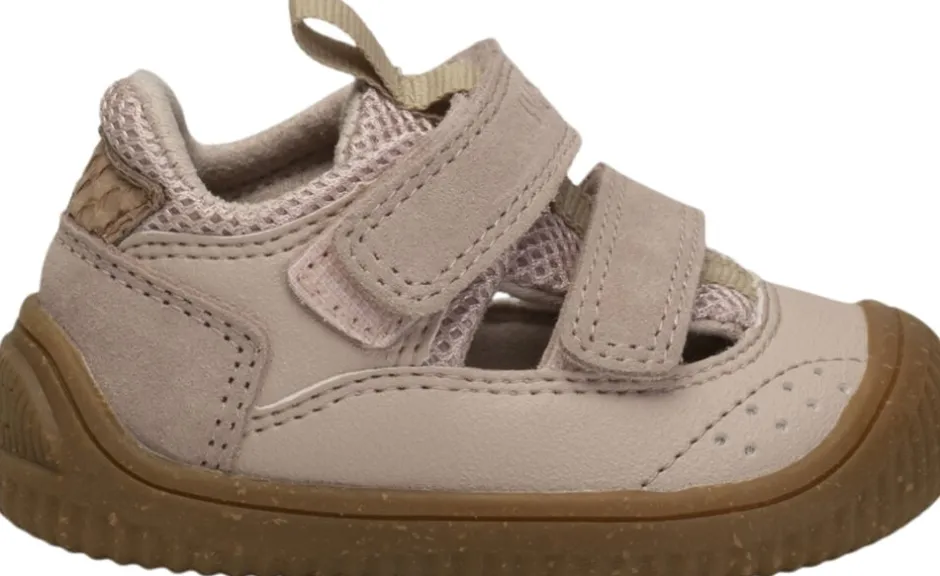 Baby sandal in trendy colors with easy-to-handle Velcro closures, beautiful suede details and fish skin. They have a firm heel cap, and the combination textile and mesh ensures a healthy envrionment for tiny feet. The shoe is spacious and has a removeable insole in naturally shock-absorbing cork and outsole in TPR rubber ensures a good grip.