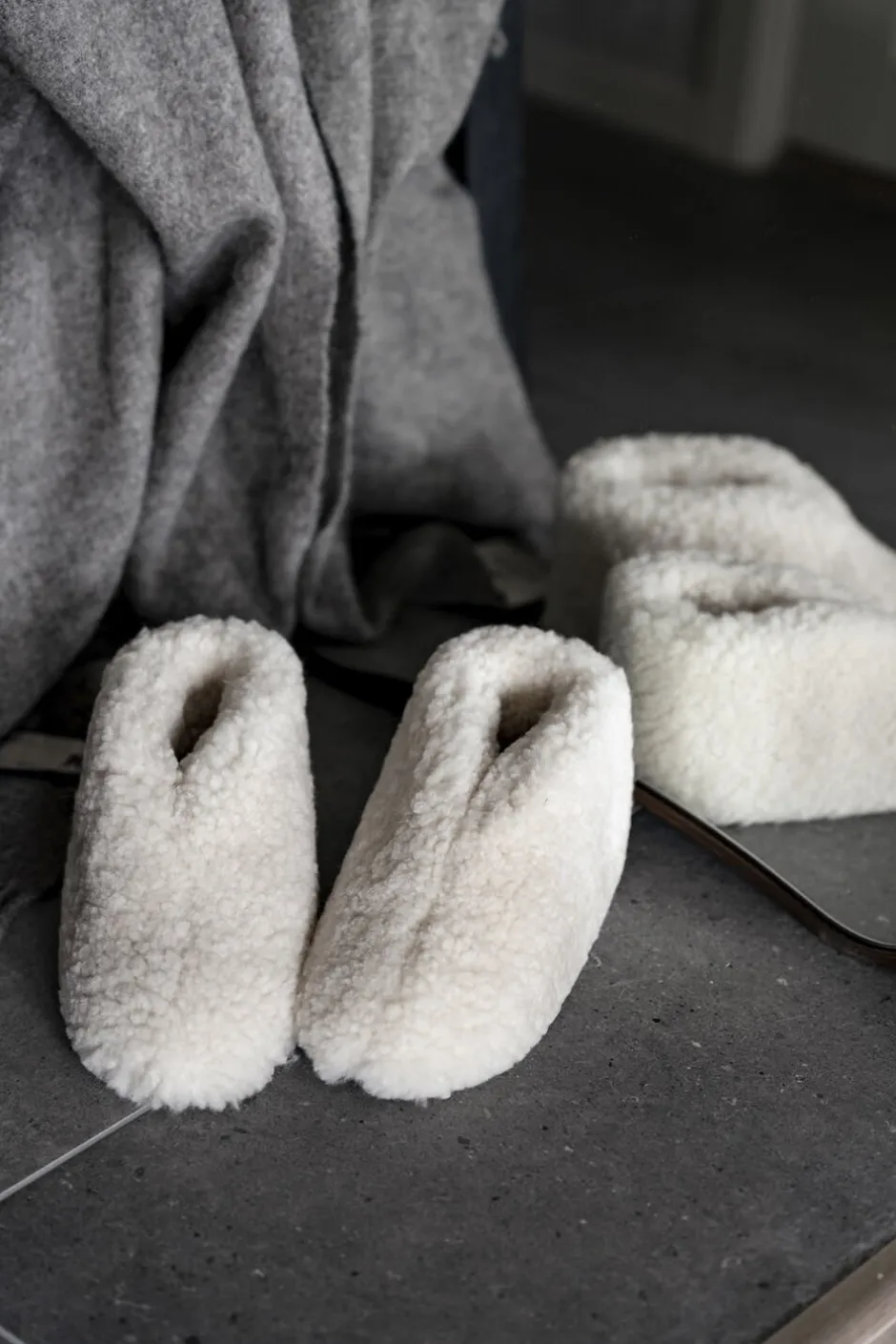 Shepherd Ulla. Et par ankelhøje, bløde hjemmesko i fåreskind. Hjemmeskoene er udformet i blød fåreuld på både overdel og indvendigt. Blød sål i ruskind.