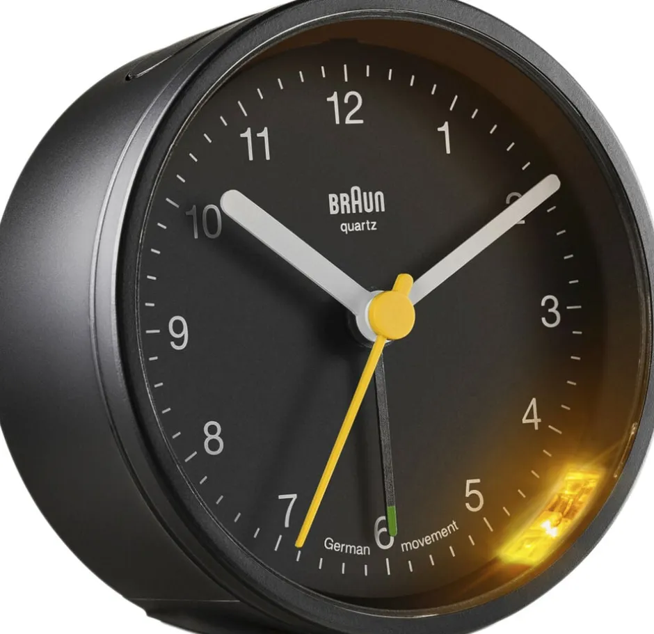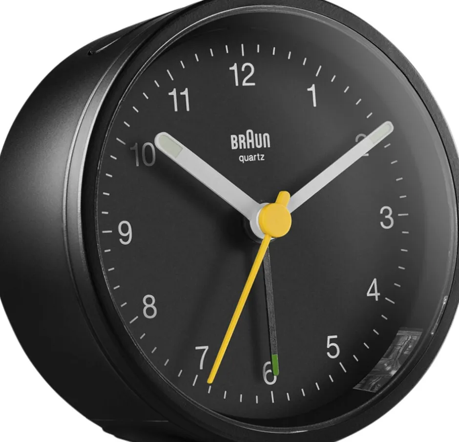 Udstyr sengebordet med denne enkle version af det klassiske Braun vækkeur. Stort display. Stigende alarmtone. Snooze-funktion.