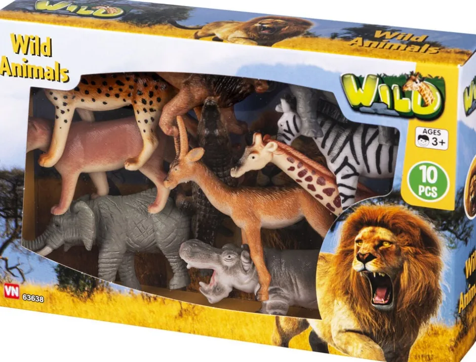 New VILDE DYR I BOX 10 DELE Børn Legetøjsfigurer